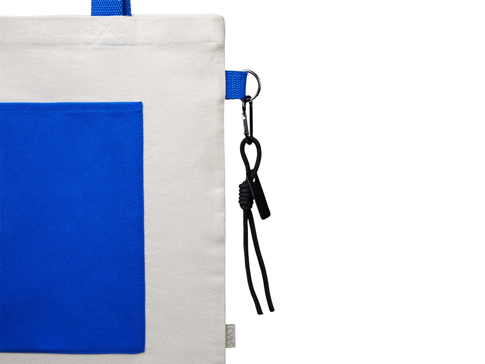 Сумка для покупок Тема из переработанных материалов с наружным цветным карманом, синий