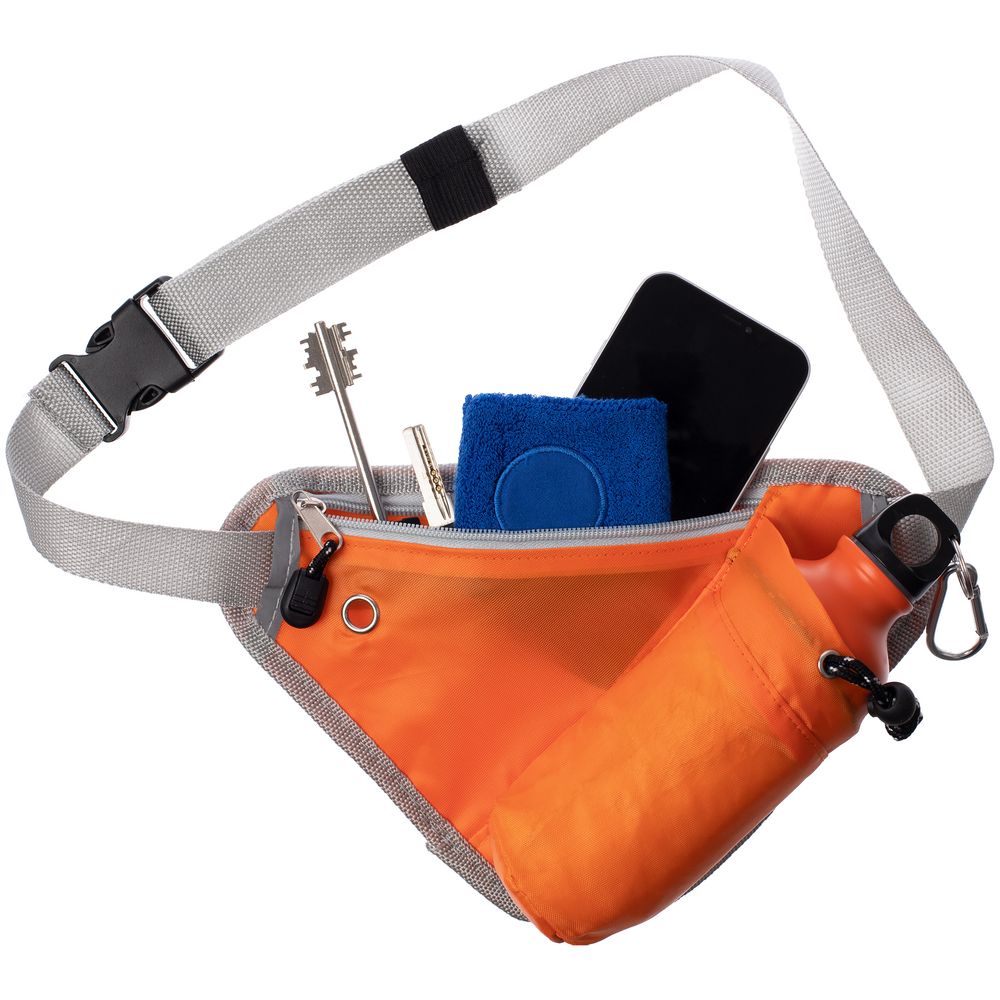 Сумка поясная с отделением для бутылки Waterun, оранжевая с логотипом компании - отличный способ заявить вашу корпоративную идентичность.
