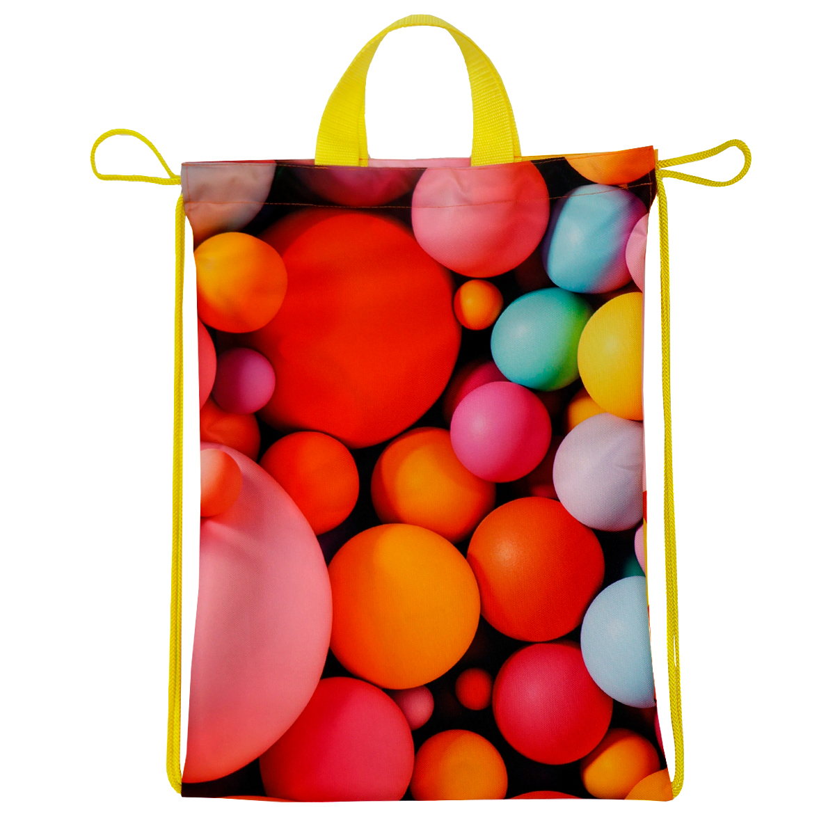Сумка-рюкзак с полноцветной печатью идеально подходит для отдыха, тренировок и станет идеальнысм подарком. Полноцветная печать по всей поверхности от шва до шва позволяет запечатать всю поверхность изделия ярким принтом и реализовать самые смелые идеи. Возможны любые оттенки по CMYK: логотипы, надписи и разнообразные принты. Односторонняя сублимация. Вместительная сумка-рюкзак затягивается шнуром по вержнему краю. Две короткие ручки и шнуры позволяют комфортно носить ее как в руке, так и на плечах.Без подкладки.