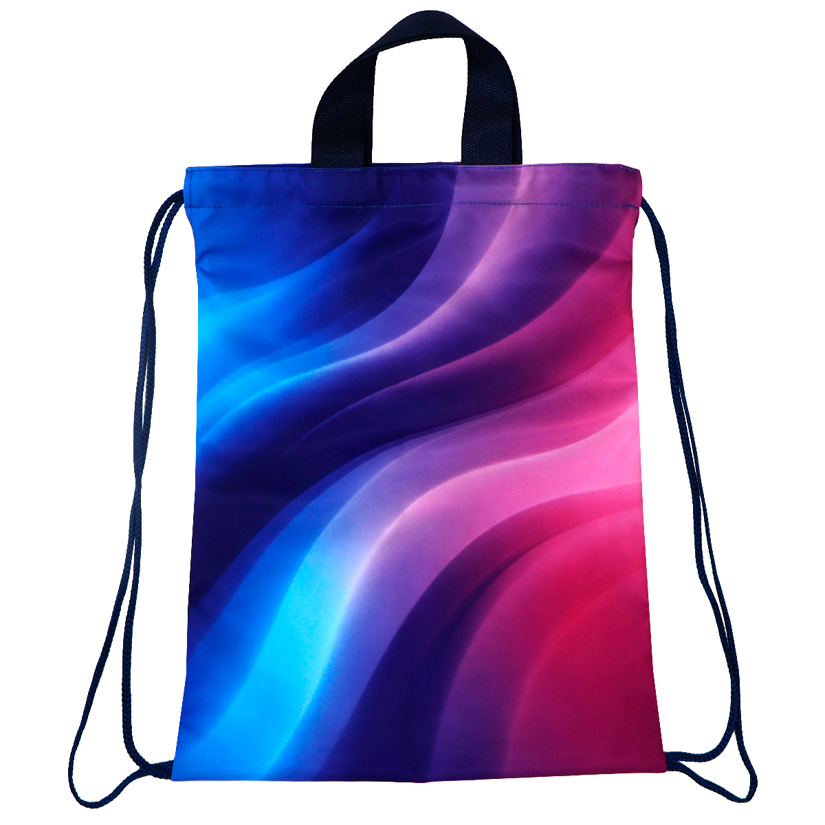 Сумка-рюкзак с полноцветной печатью идеально подходит для отдыха, тренировок и станет идеальнысм подарком. Полноцветная печать по всей поверхности от шва до шва позволяет запечатать всю поверхность изделия ярким принтом и реализовать самые смелые идеи. Возможны любые оттенки по CMYK: логотипы, надписи и разнообразные принты. Односторонняя сублимация. Вместительная сумка-рюкзак затягивается шнуром по вержнему краю. Две короткие ручки и шнуры позволяют комфортно носить ее как в руке, так и на плечах.Без подкладки.