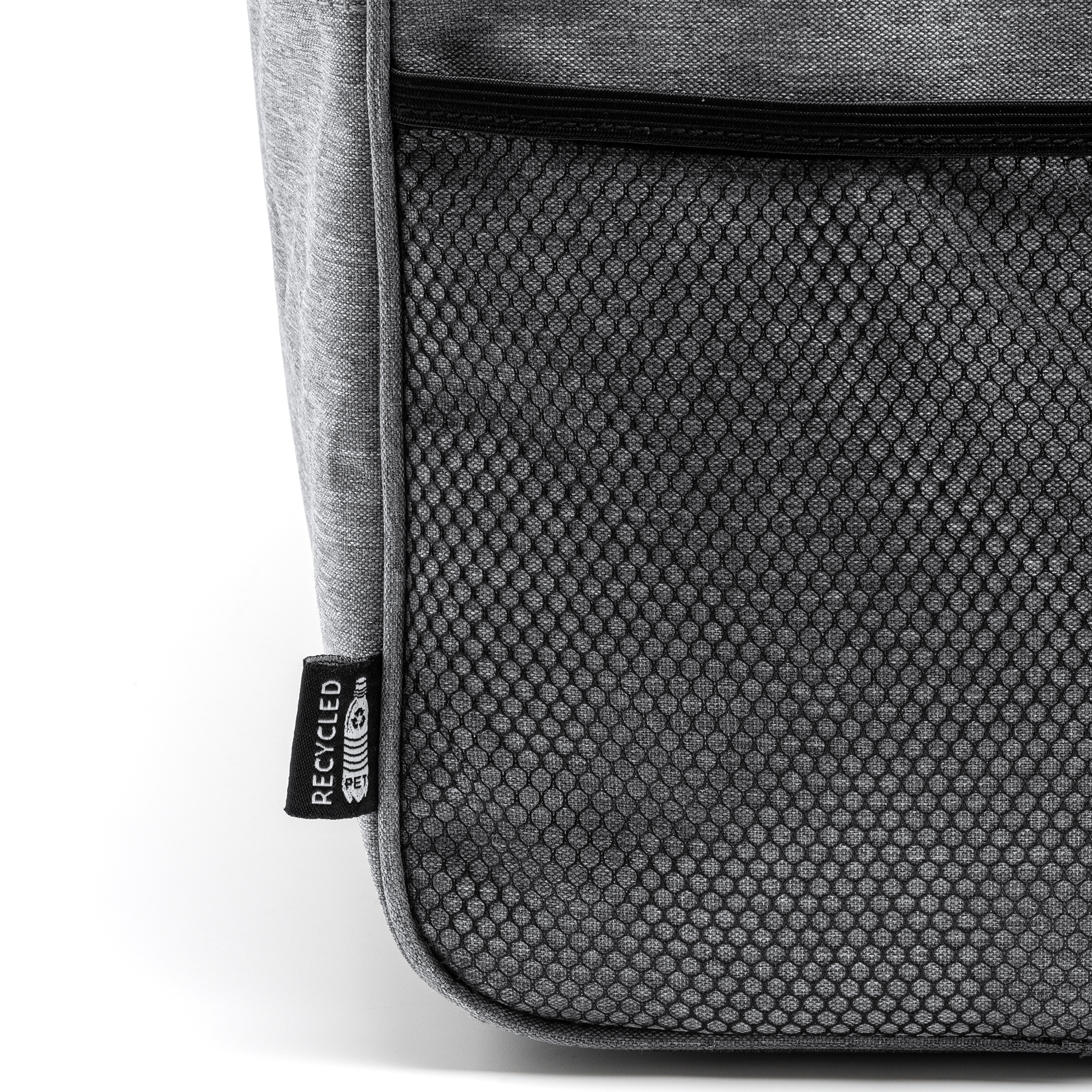 Многофункциональная сумка из 300D RPET с вересковым узором. Вместимость: 30 литров. Застежка-молния в основном и переднем кармане. Боковой сетчатый карман. Мягкий регулируемый плечевой ремень в комплекте.