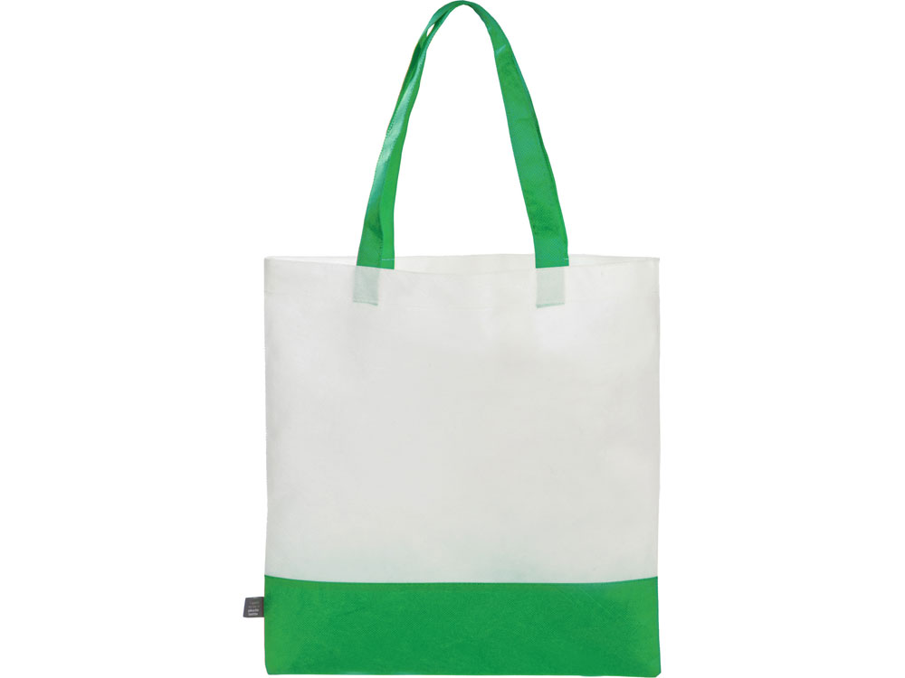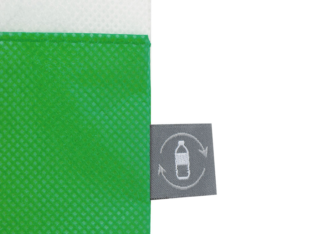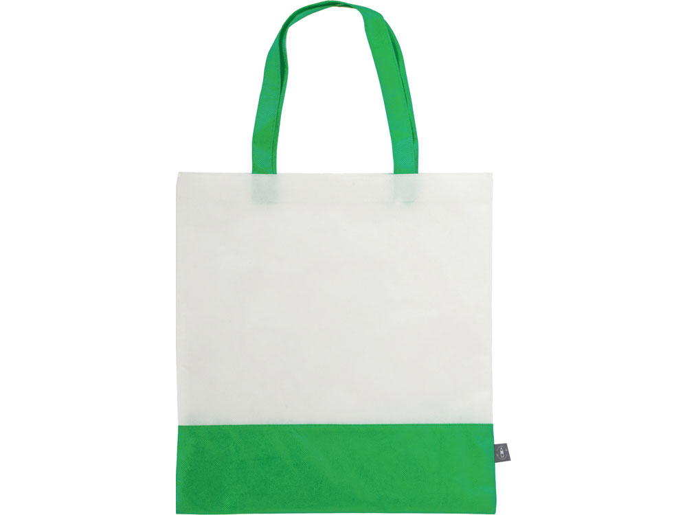 Сумка-шоппер двухцветная Revive из нетканого переработанного материала, зеленый с логотипом компании - отличный способ заявить вашу корпоративную идентичность.