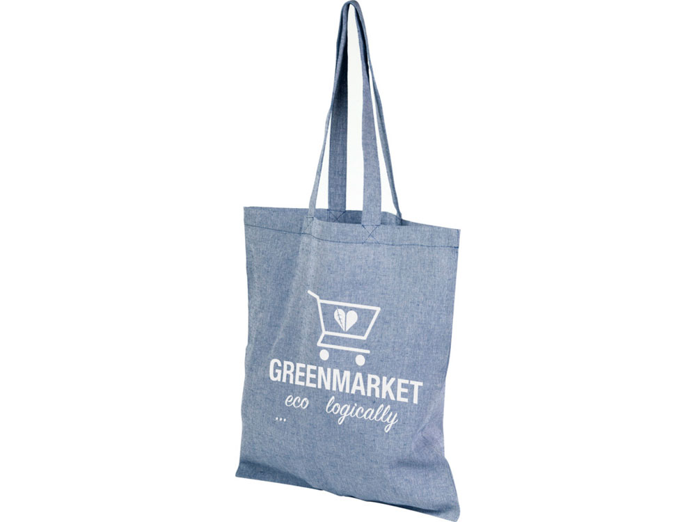 Сумка-тоут Pheebs из переработанного хлопка 150 г/м2, синий меланж с логотипом компании - отличный способ заявить вашу корпоративную идентичность.