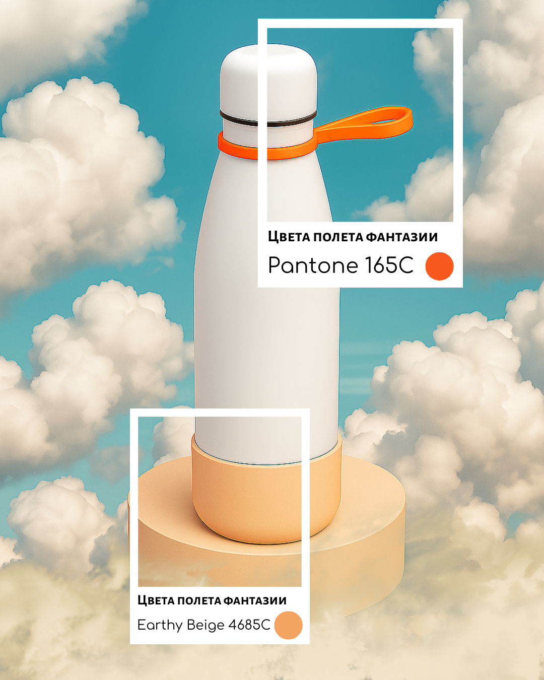 Компания «Эклектика BY» осуществляет нанесение логотипа на сувенирную продукцию: Термобутылка герметичная вакуумная Olivia To Go, белый/оранжевый/бежевый. Арт. 446868