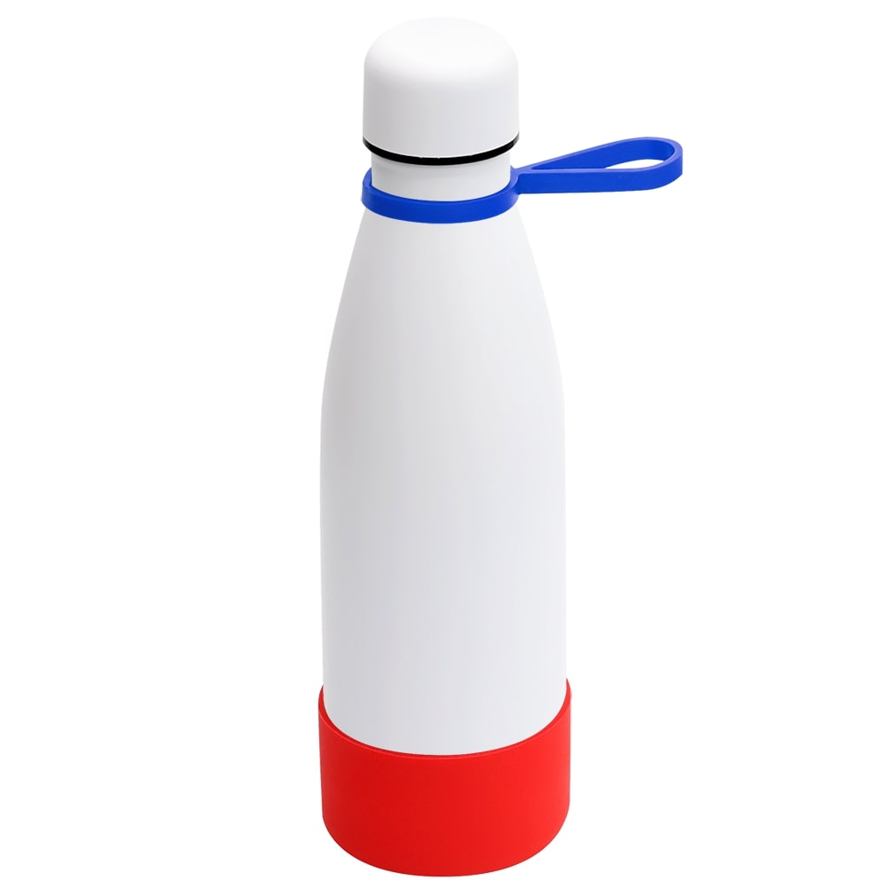 Термобутылка герметичная вакуумная Olivia To Go, белый/синий/красный с логотипом компании - отличный способ заявить вашу корпоративную идентичность.