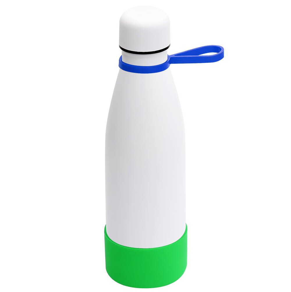 Термобутылка герметичная вакуумная Olivia To Go, белый/синий/зеленый с логотипом компании - отличный способ заявить вашу корпоративную идентичность.