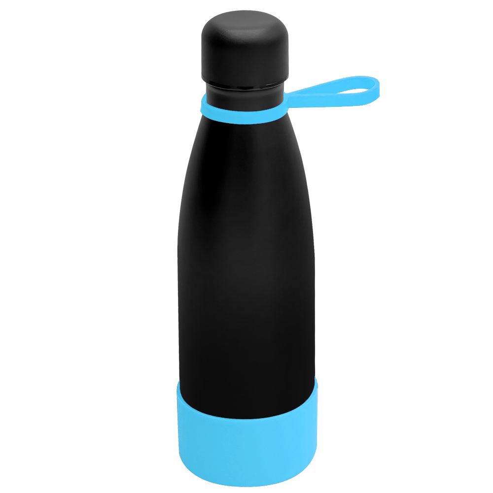 Термобутылка герметичная вакуумная Olivia To Go, чёрный/бирюзовый с логотипом компании - отличный способ заявить вашу корпоративную идентичность.