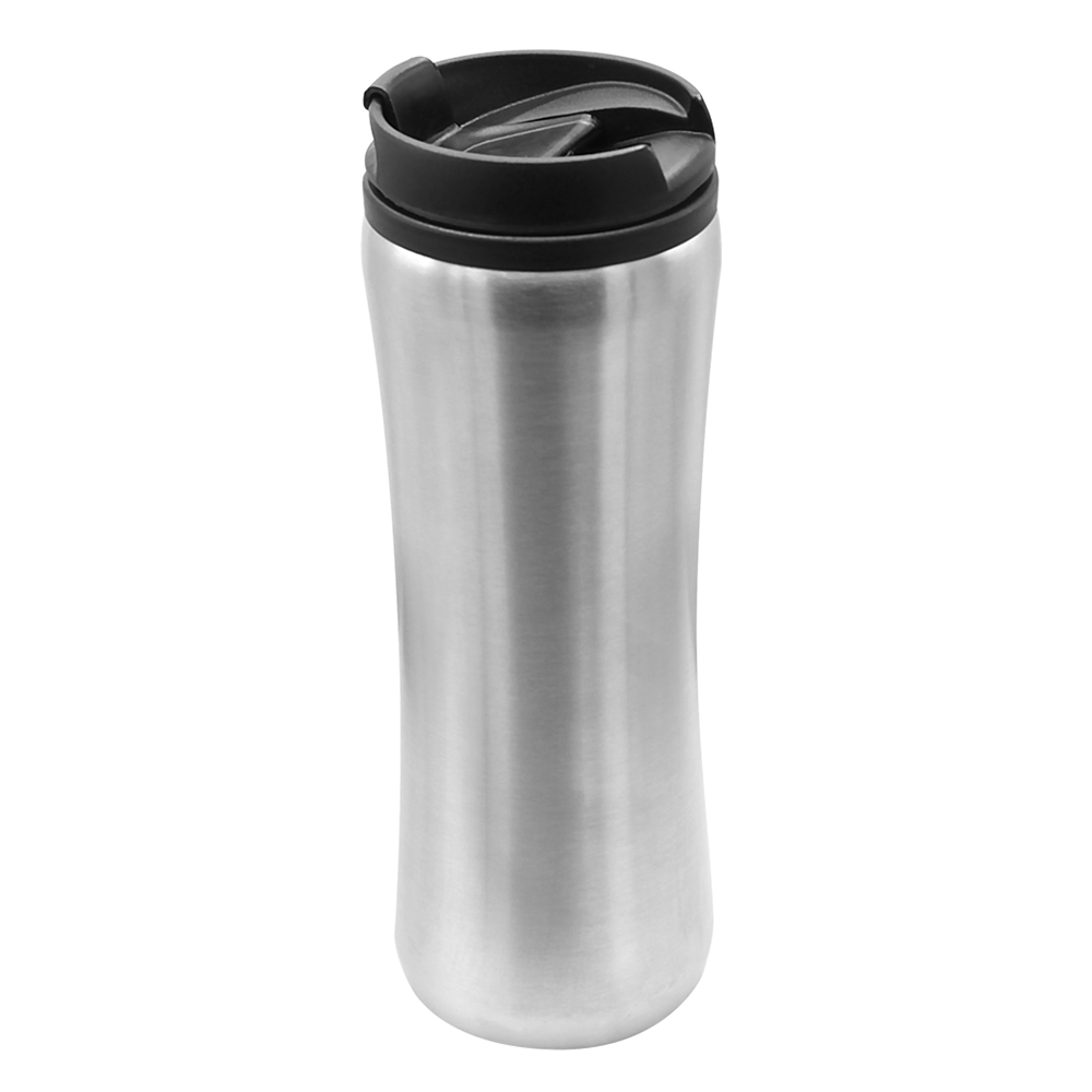 Термокружка изготовлена из нержавеющей стали. Внутренняя колба сделана из пластика. Вакуумная конструкция. Откидной клапан позволяет пить, не снимая крышку, что помогает дольше сохранить начальную температуру напитка. Объем термокружки – 500 мл.
