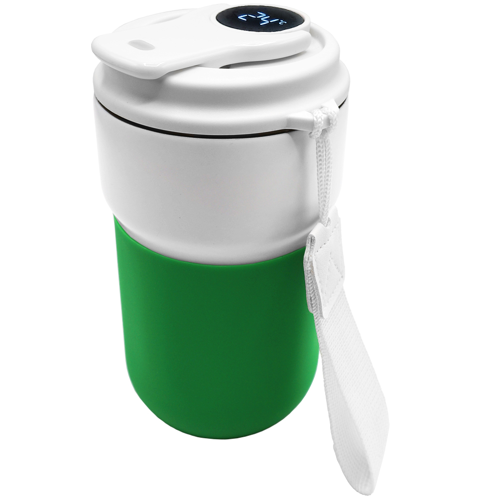 Термокружка вакуумная герметичная с дисплеем Clive To Go, белый/зелёный с логотипом компании - отличный способ заявить вашу корпоративную идентичность.