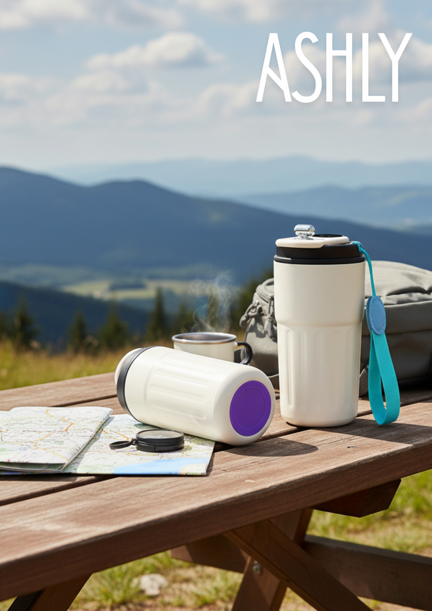 Термокружка Ashly To Go, белая/бирюзовая/фиолетовая с логотипом компании - отличный способ заявить вашу корпоративную идентичность.