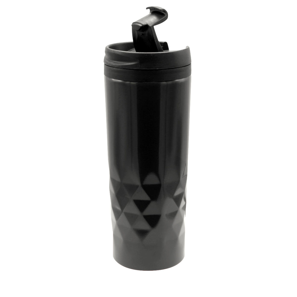 Стильная термокружка изготовлена из нержавеющей стали и дополнена оригинальными геометрическими деталями. Внутренняя колба сделана из пластика. Удобная крышка не даст расплескаться напитку. Объем термокружки – 500 мл.