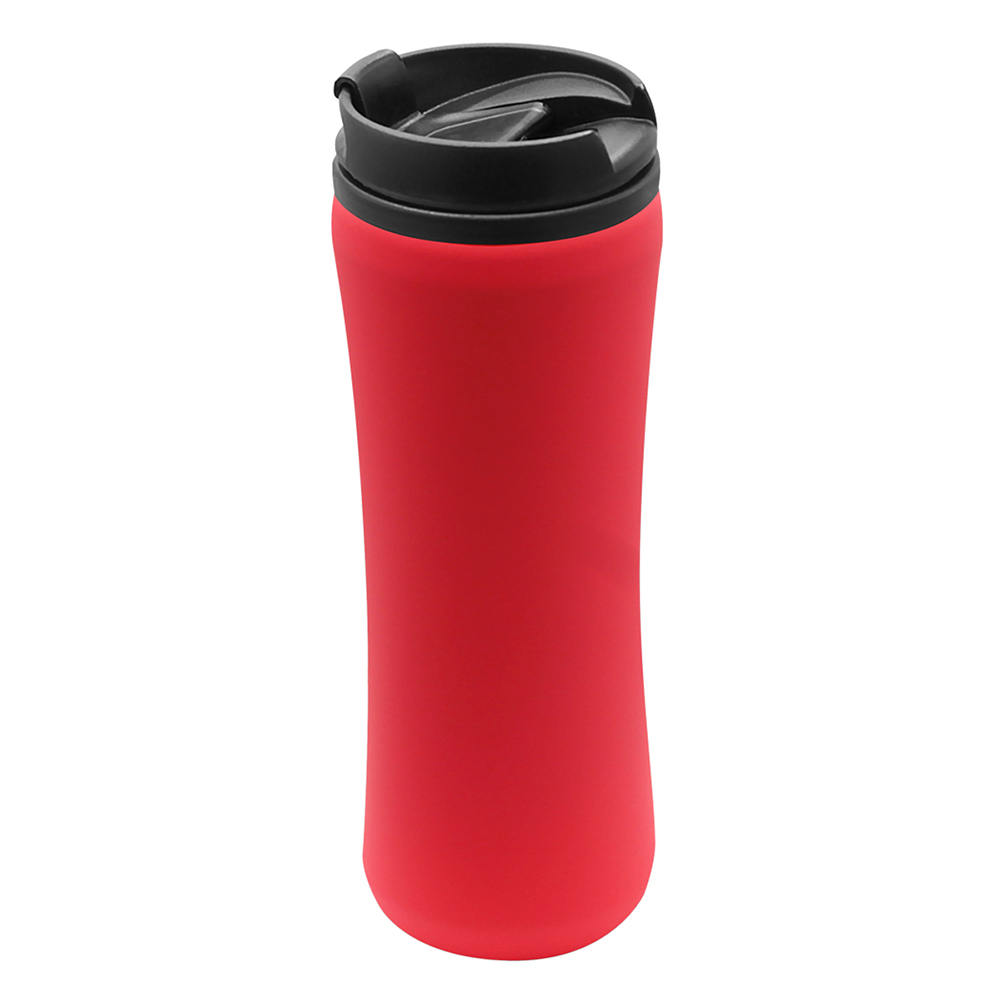 Термокружка изготовлена из нержавеющей стали с покрытием софт тач. Внутренняя колба сделана из пластика. Вакуумная конструкция. Откидной клапан позволяет пить, не снимая крышку, что помогает дольше сохранить начальную температуру напитка. Объем термокружки – 500 мл.
