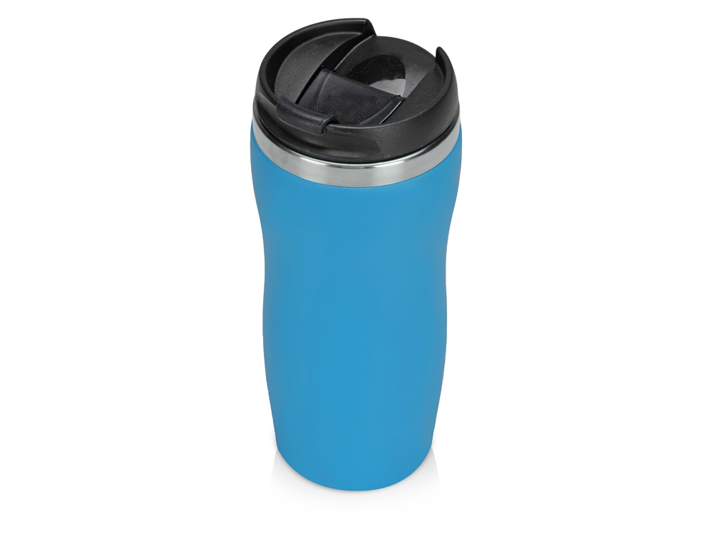 Термокружка Mony Steel 350 мл, soft touch, голубой с логотипом компании - отличный способ заявить вашу корпоративную идентичность.