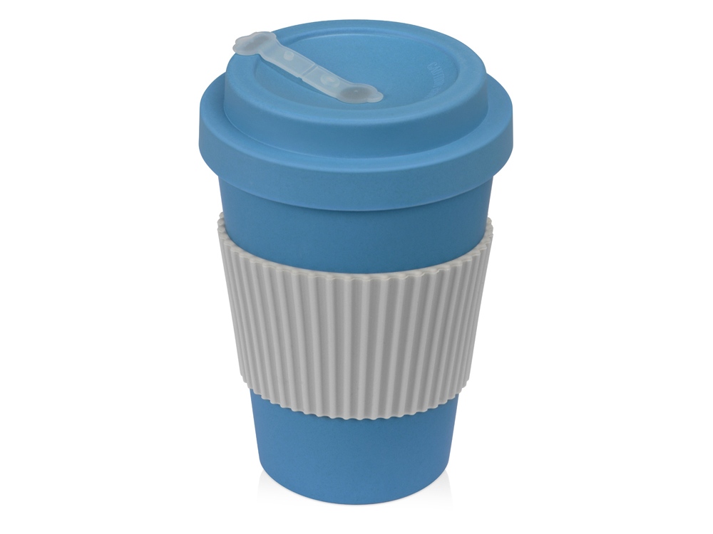 Термокружка Muffin из натуральных волокон, голубой с логотипом компании - отличный способ заявить вашу корпоративную идентичность.