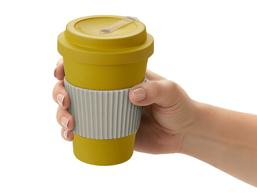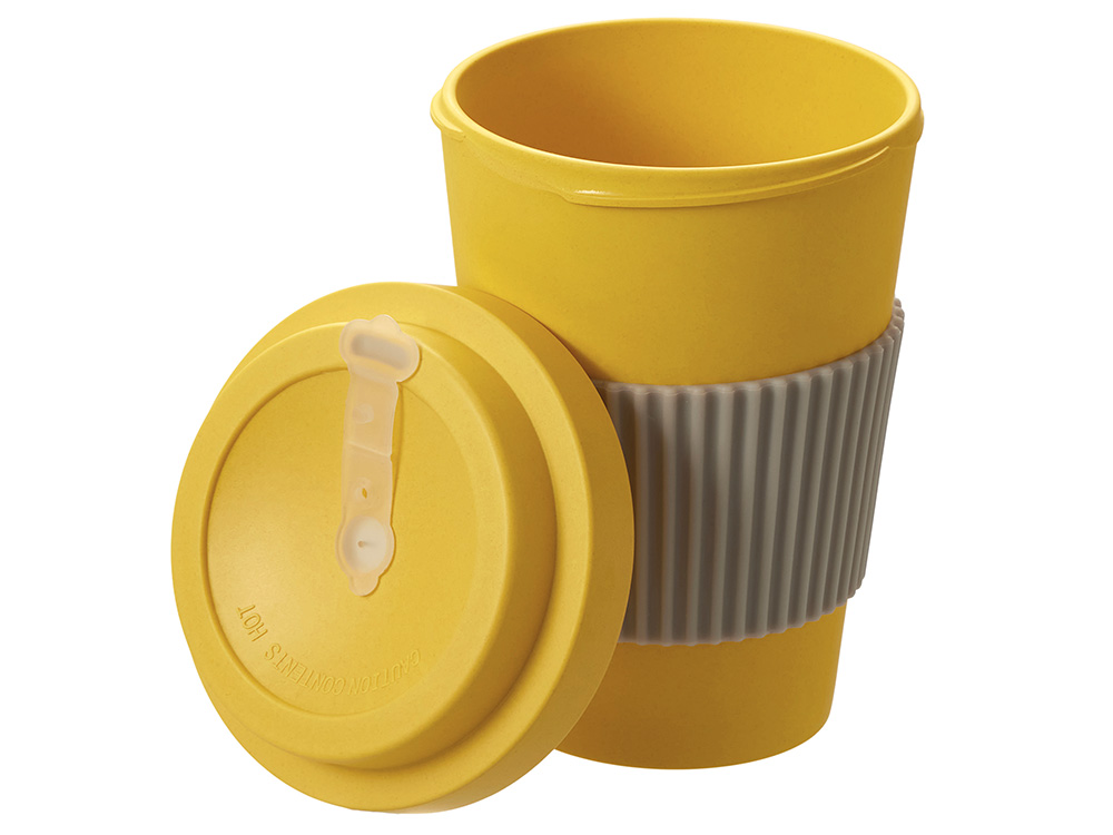 Термокружка Muffin из натуральных волокон, желтый с логотипом компании - отличный способ заявить вашу корпоративную идентичность.