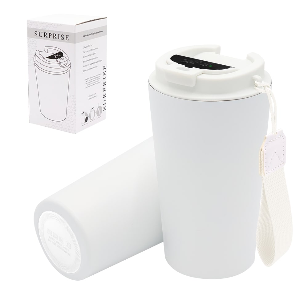 Компания «Эклектика BY» осуществляет нанесение логотипа на сувенирную продукцию: Термокружка Surprise To Go с индикатором, белая. Арт. 216886