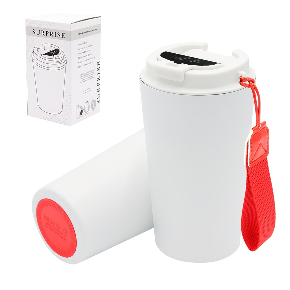 Термокружка Surprise To Go с индикатором, белая/красная с логотипом компании - отличный способ заявить вашу корпоративную идентичность.