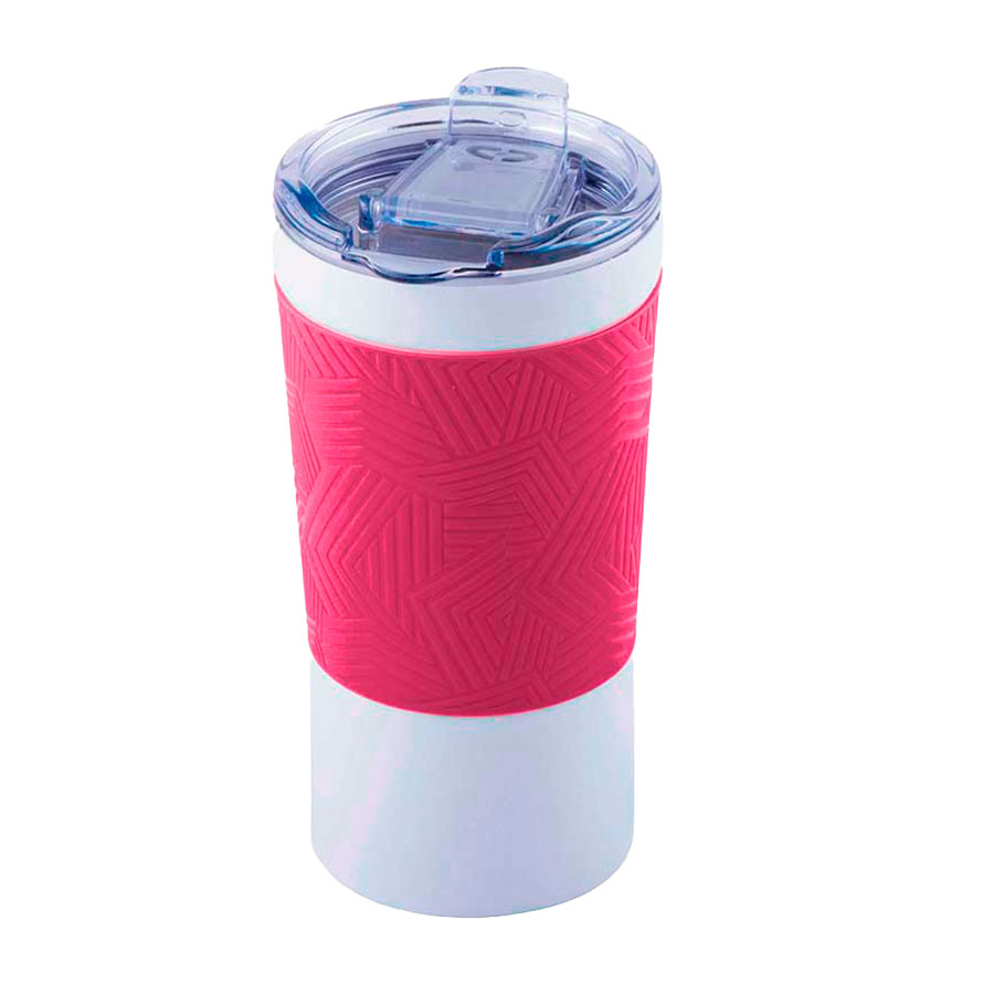 Вакуумная термокружка с покрытием "ice flower" и силиконовой манжетой.