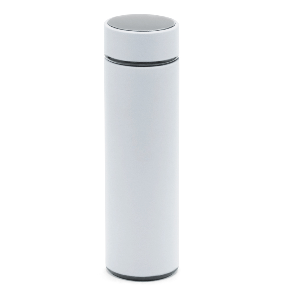 Термос Indy софт-тач, светло-серый с логотипом компании - отличный способ заявить вашу корпоративную идентичность.