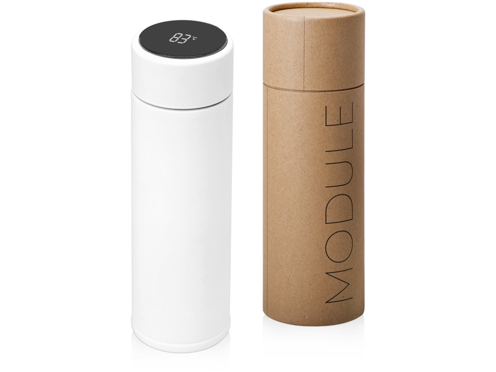 Термос с индикатором температуры Module, тубус, 360 мл, белый с логотипом компании - отличный способ заявить вашу корпоративную идентичность.