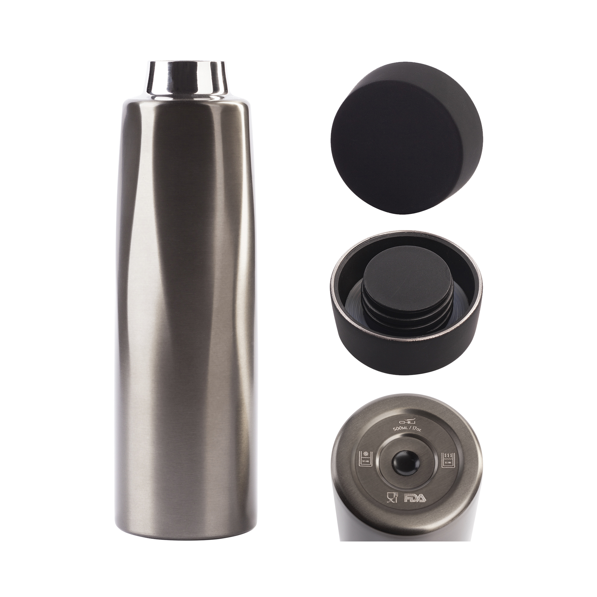 Стальной корпус термоса особенно выразительно подчеркивает рельефные «языки пламени», плавно переходящие в идеальный цилиндр. Крышка черного цвета выполнена в покрытии soft touch. Полностью герметичный. Компактный объём в 500 мл удобно брать с собой в путешествия, поездки или на прогулку. Горячий, согревающий напиток или прохладный освежающий коктейль – выбор за вами! Можно мыть в посудомоечной машине (без крышки).