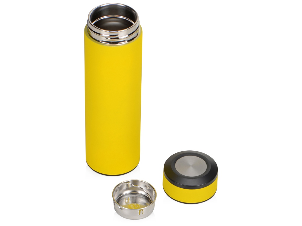 Термос Confident с покрытием soft-touch 420мл, желтый с логотипом компании - отличный способ заявить вашу корпоративную идентичность.