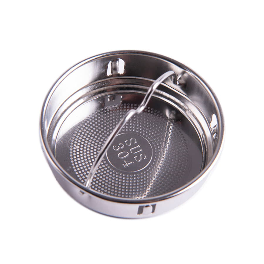 Термос имеет навинчивающуюся крышечку и ситечко.