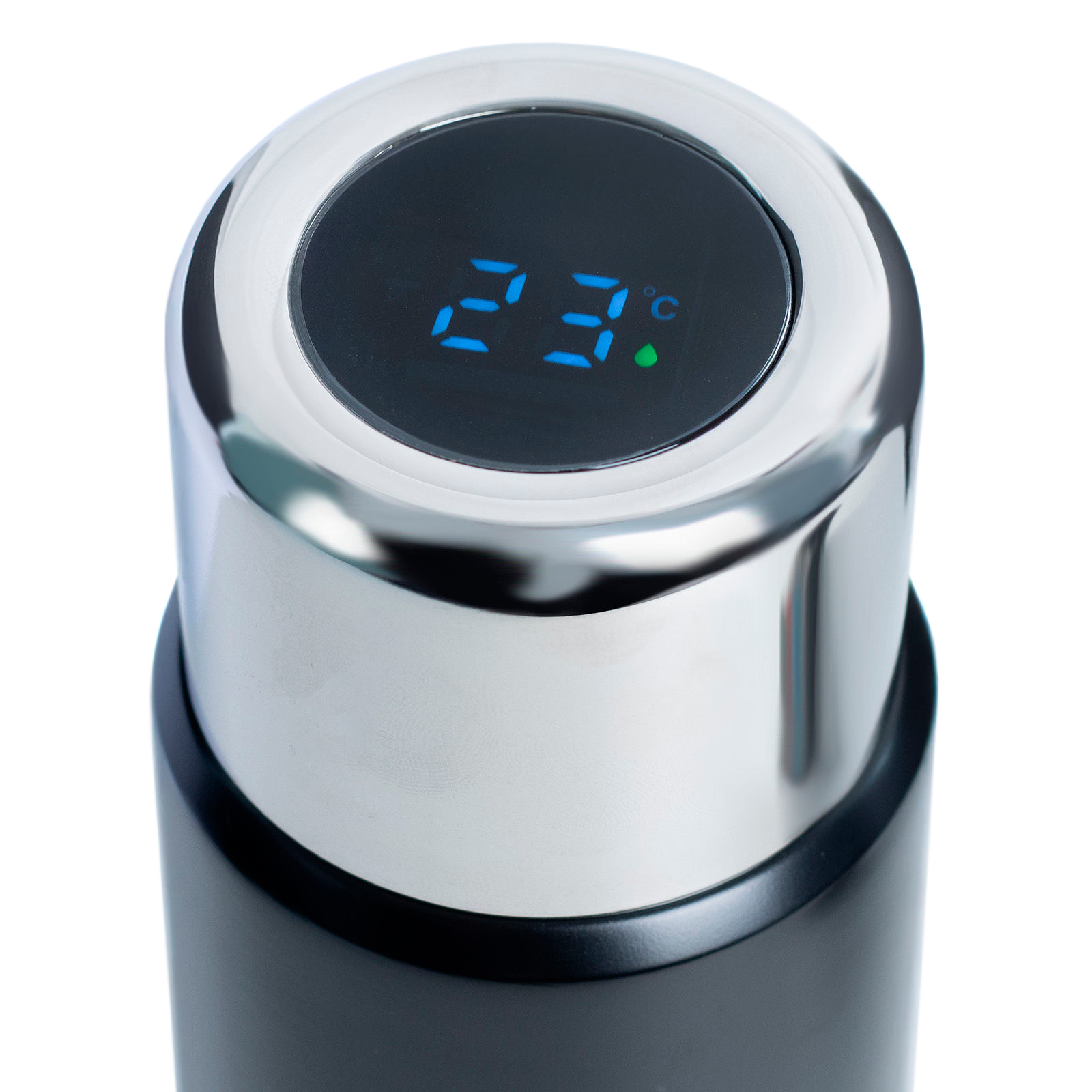 Термос Versus с дисплеем, чёрный с логотипом компании - отличный способ заявить вашу корпоративную идентичность.