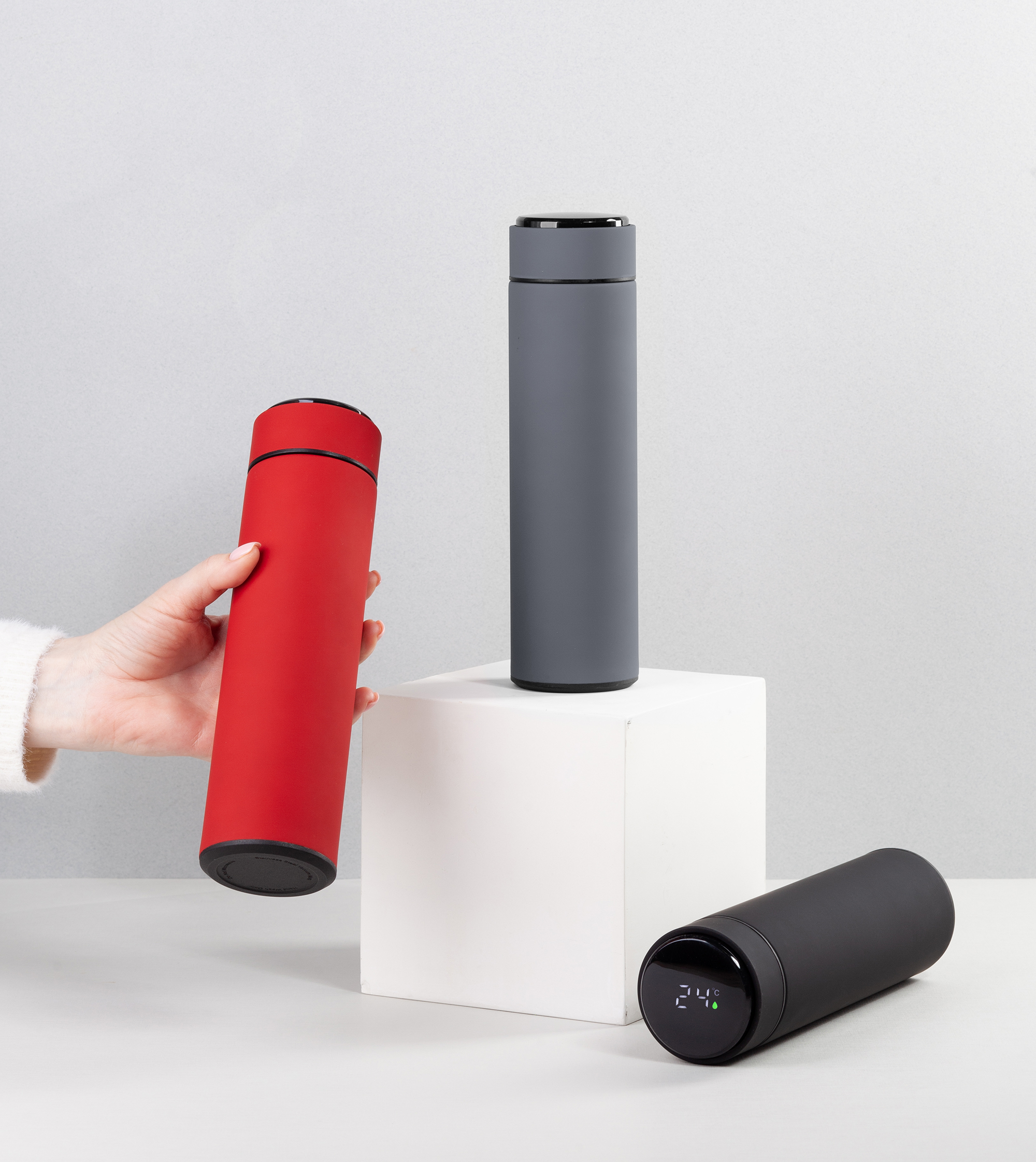 Главная ->Корпоративные подарки и рекламные сувениры на складе -> Термос и бутылка -> Термосы -> Термос "Бостон next" 500 мл с индикацией температуры, soft touch, сменная батарейка