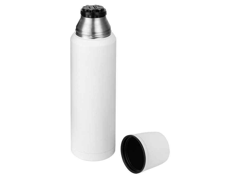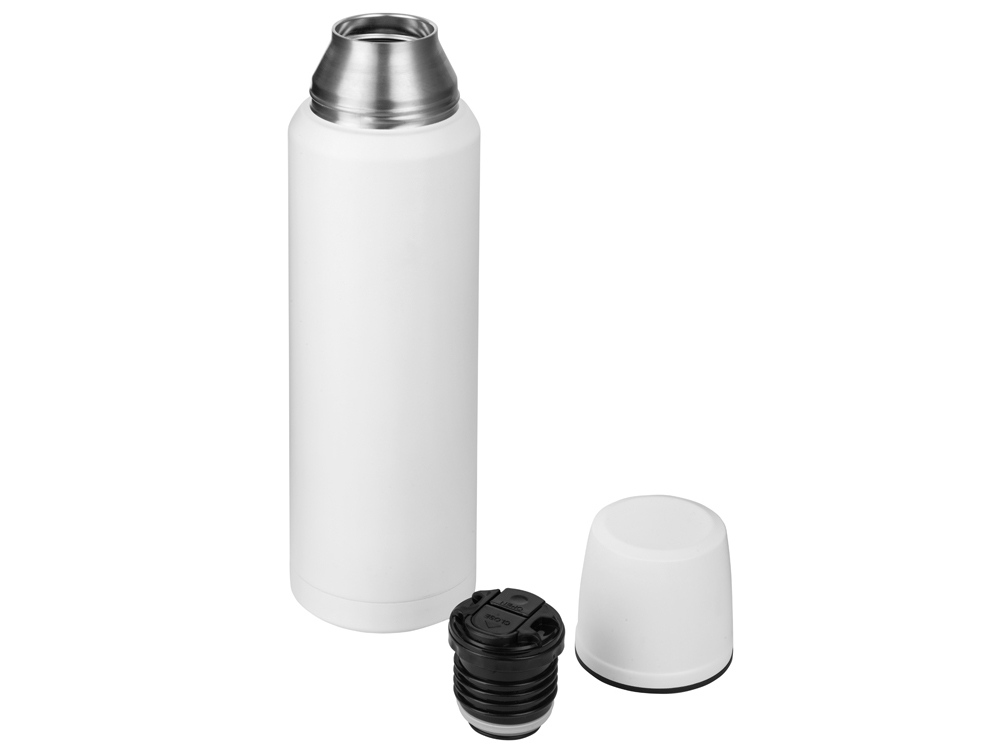 Термос с чашей и двойными медными стенками Stern, 1 л, белый с логотипом компании - отличный способ заявить вашу корпоративную идентичность.