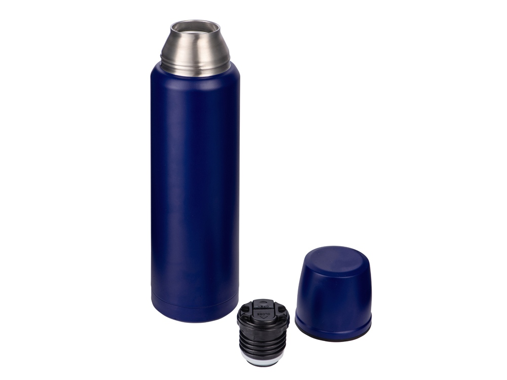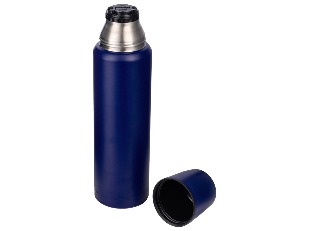Термос с чашей и двойными медными стенками Stern, 1 л, темно-синий с логотипом компании - отличный способ заявить вашу корпоративную идентичность.
