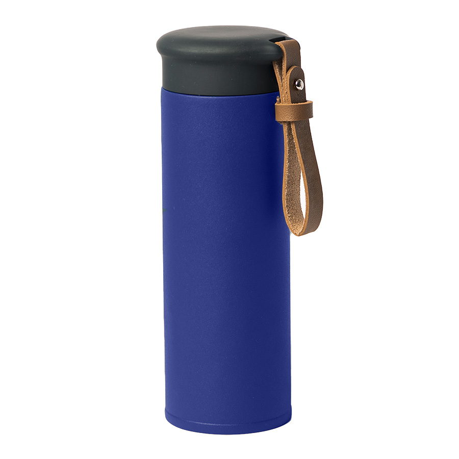 Вакуумный термос STRIPE с двойными стальными стенками Стильный матовый корпус термоса из нержавеющей стали (марка 304) Удобный ремешок из искусственной кожи, подходит для персонализации Герметичная крышка с покрытием soft-touch не даст напитку пролиться Цвет близкий к Pantone REFLEX blue C Индивидуальная упаковка из крафтового картона