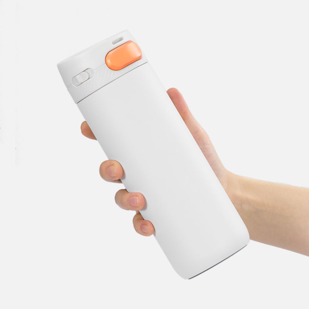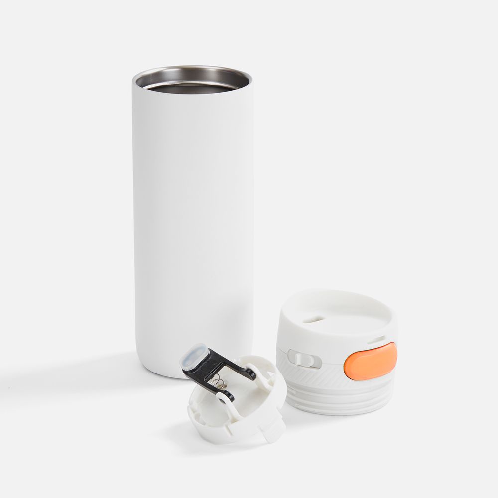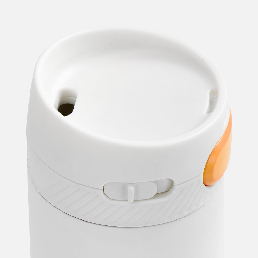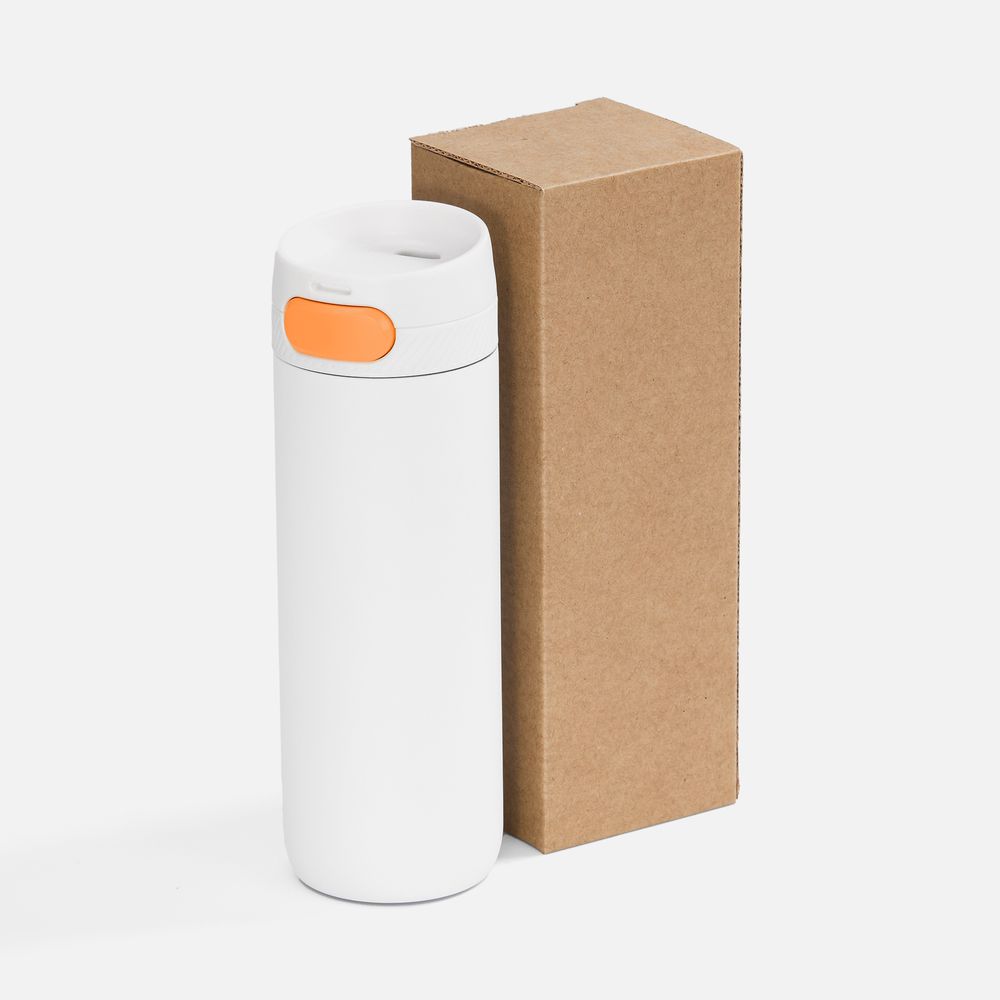 Главная ->Корпоративные подарки и рекламные сувениры на складе -> Термос и бутылка -> Термокружки -> Термостакан X1 с цветной кнопкой, белый с оранжевым