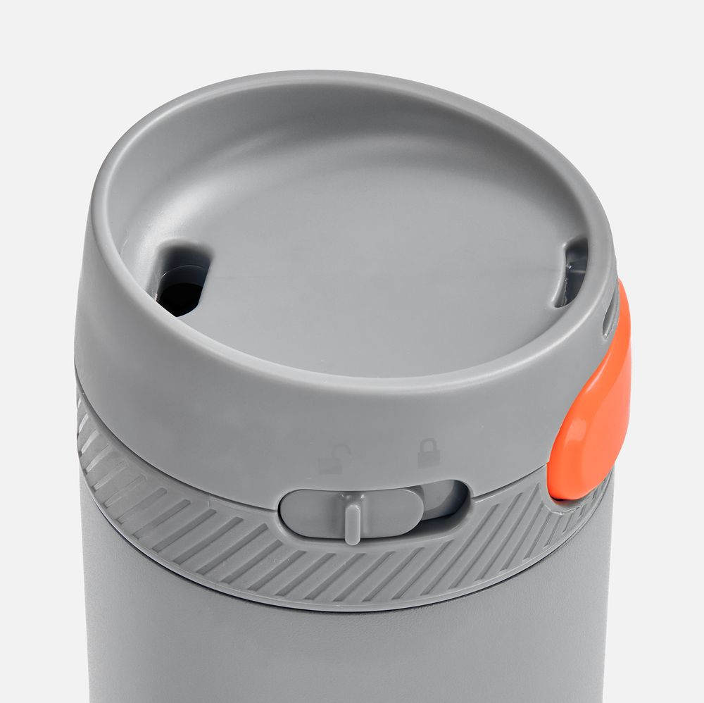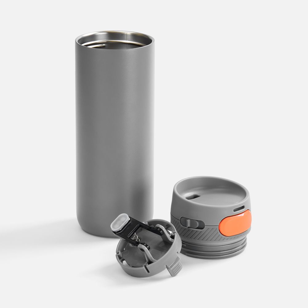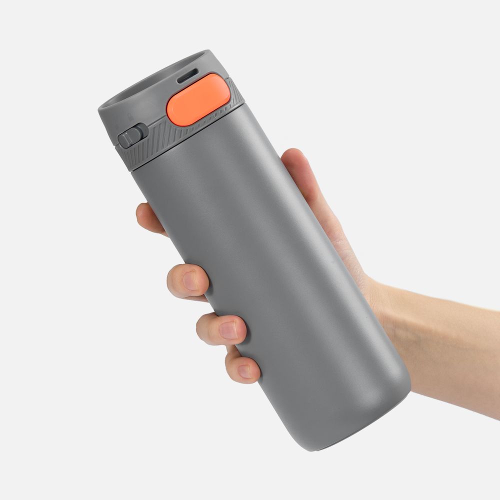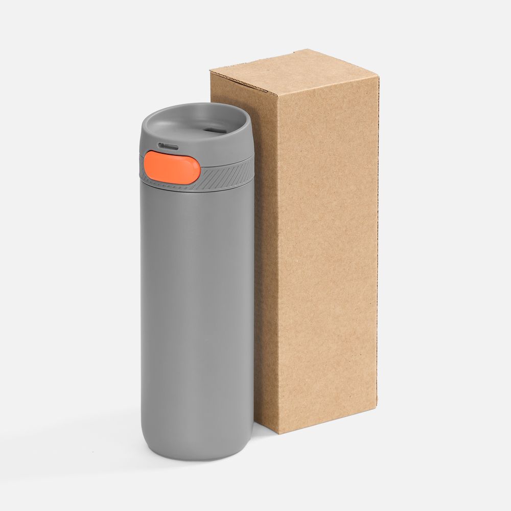 Главная ->Корпоративные подарки и рекламные сувениры на складе -> Термос и бутылка -> Термокружки -> Термостакан X1 с цветной кнопкой, серый с оранжевым
