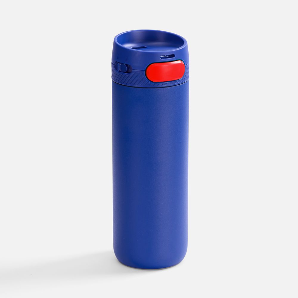 Главная ->Корпоративные подарки и рекламные сувениры на складе -> Термос и бутылка -> Термокружки -> Термостакан X1 с цветной кнопкой, синий с красным