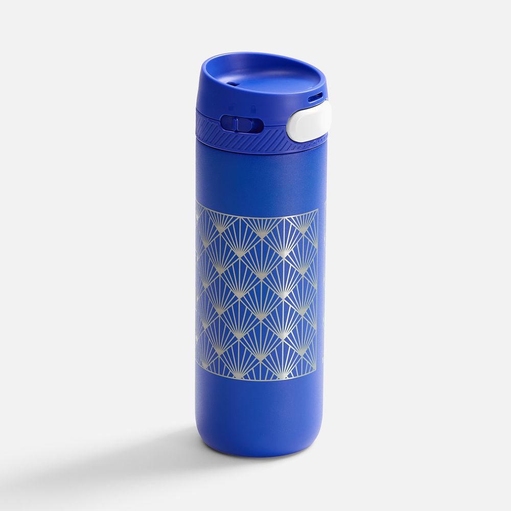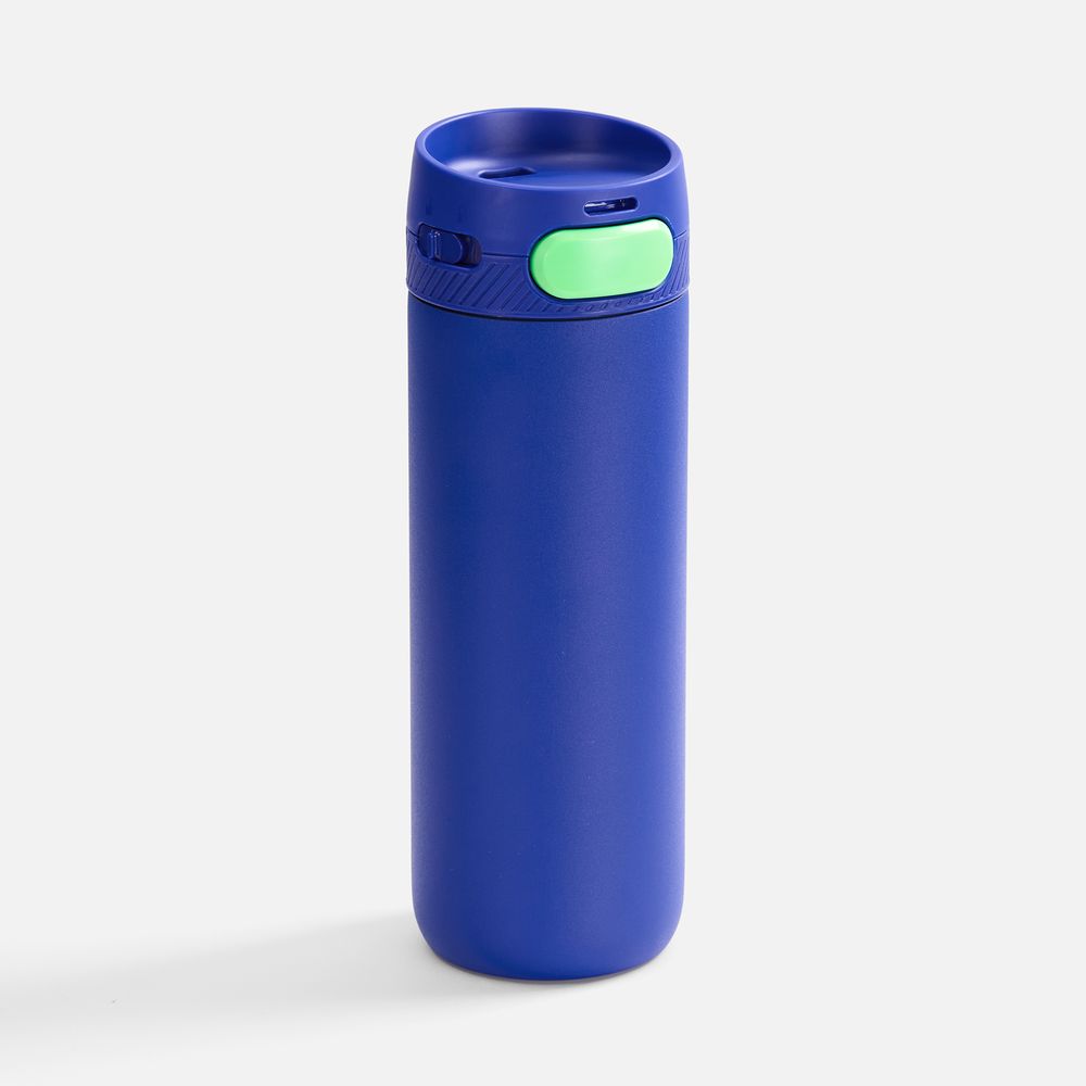 Главная ->Корпоративные подарки и рекламные сувениры на складе -> Термос и бутылка -> Термокружки -> Термостакан X1 с цветной кнопкой, синий с зеленым