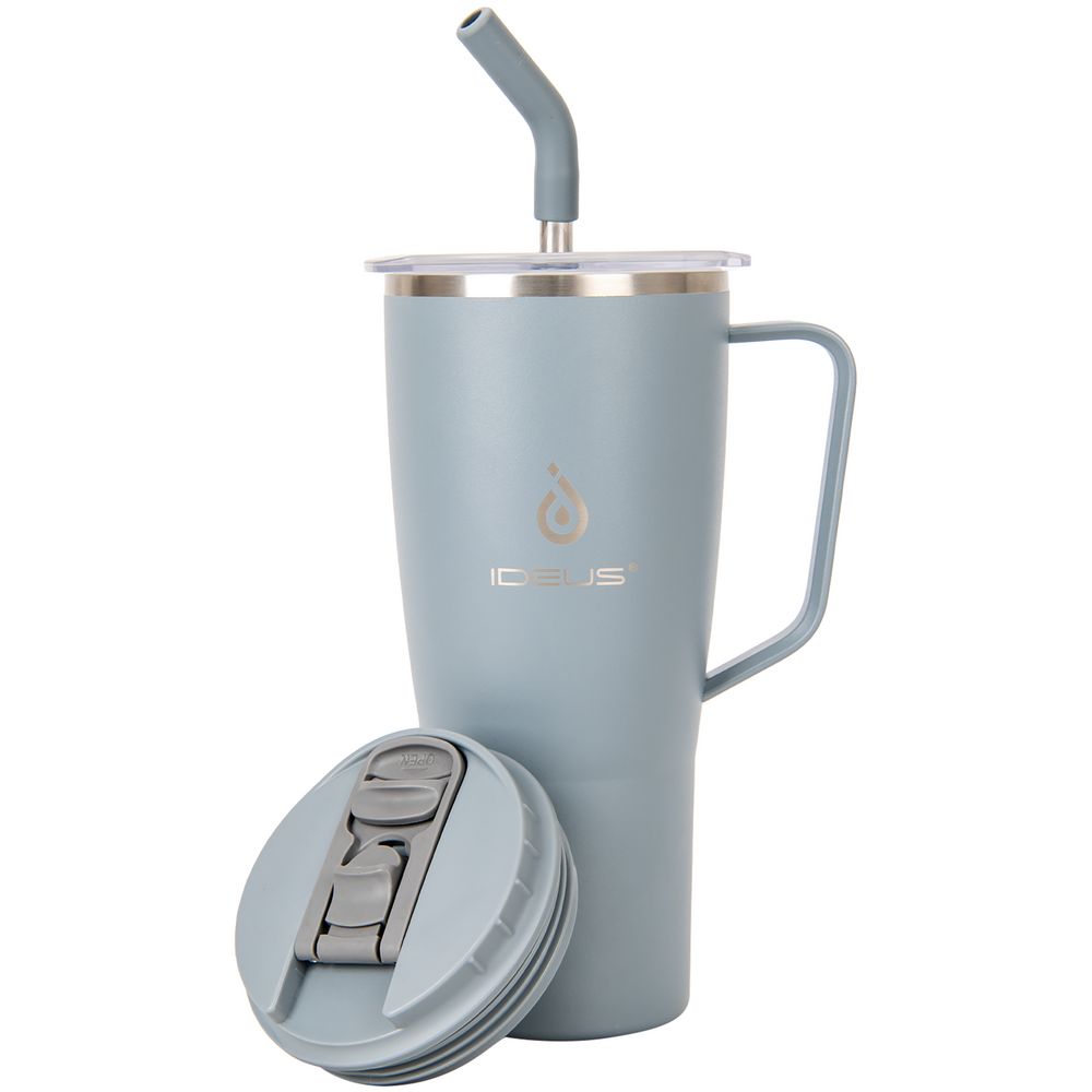 - 2 крышки в комплекте: одна на 100% герметичная с механизмом блокировки отверстия для питья, вторая — с отверстием для трубочки