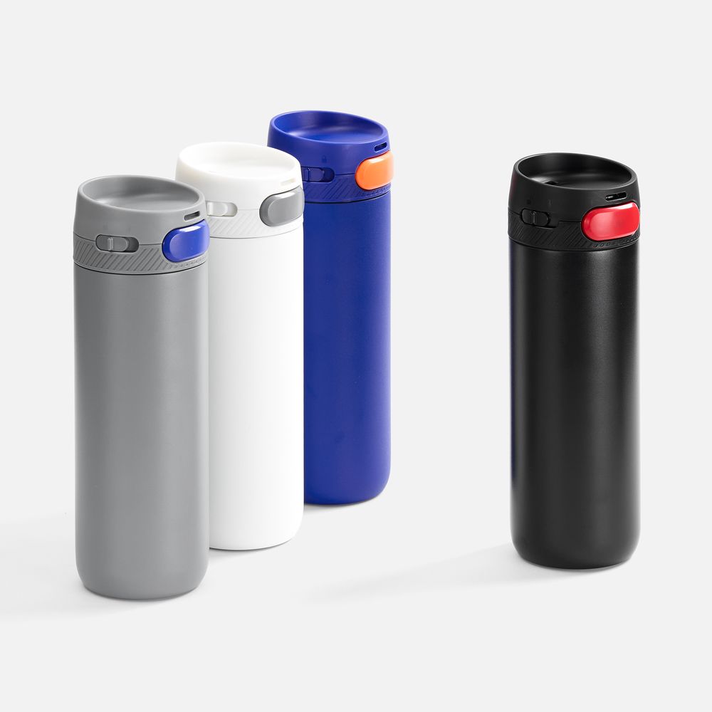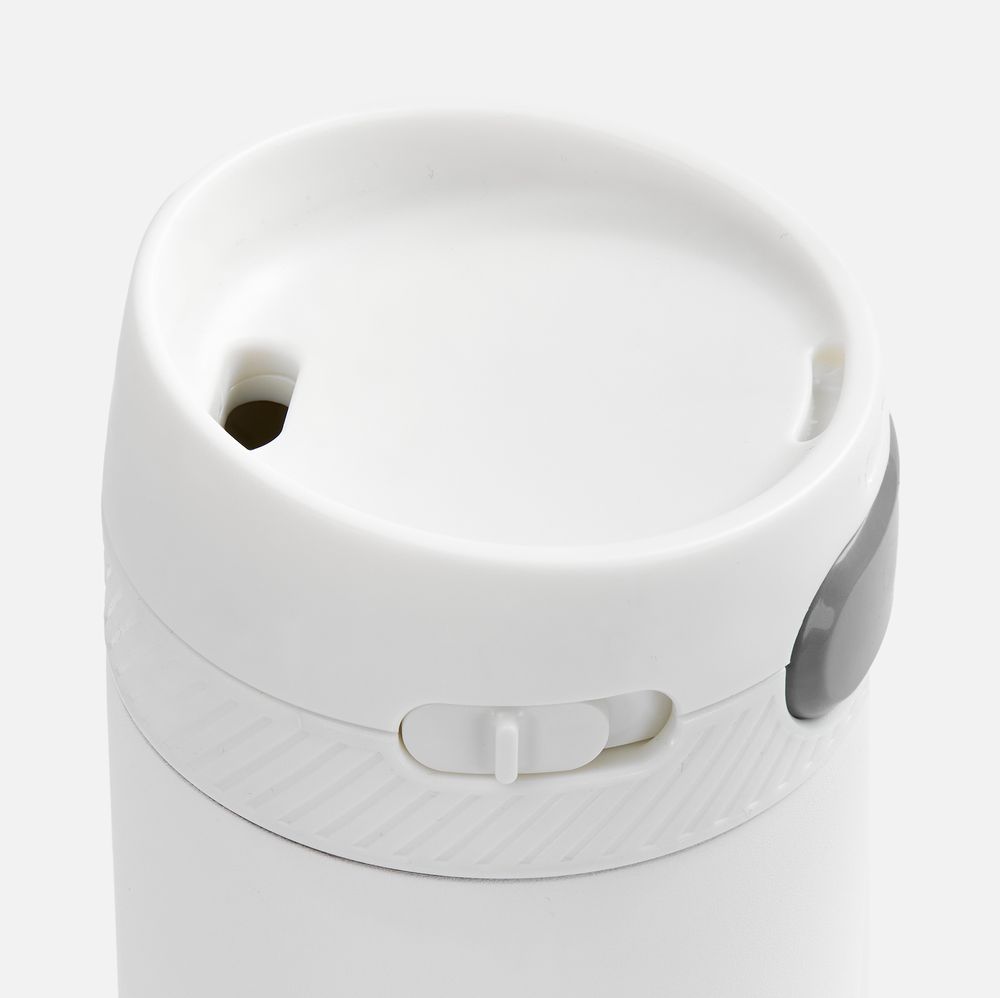 Главная ->Корпоративные подарки и рекламные сувениры на складе -> Термос и бутылка -> Термокружки -> Термостакан X1 с цветной кнопкой, белый с серым