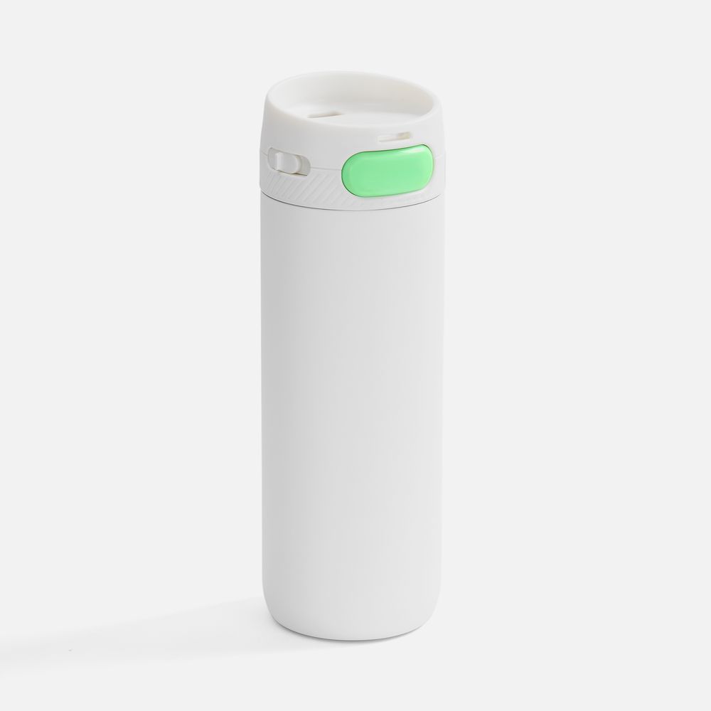 Главная ->Корпоративные подарки и рекламные сувениры на складе -> Термос и бутылка -> Термокружки -> Термостакан X1 с цветной кнопкой, белый с зеленым