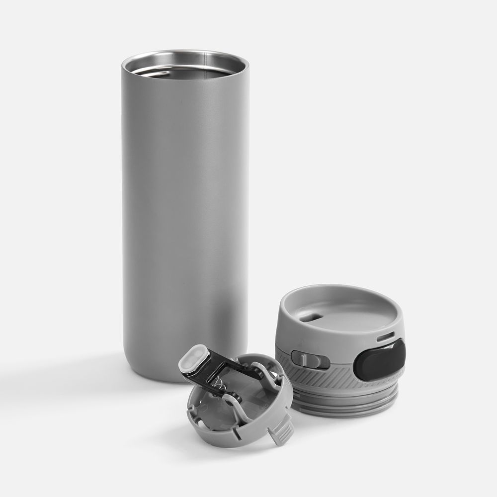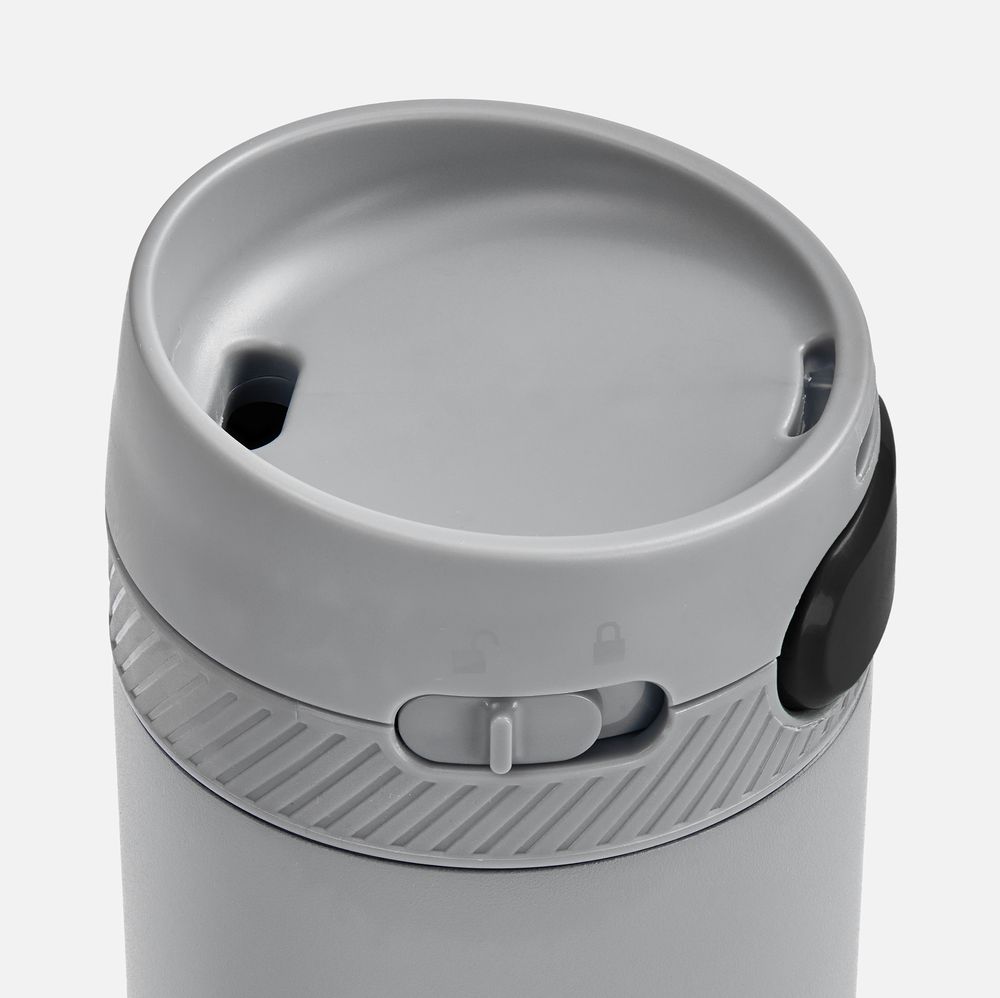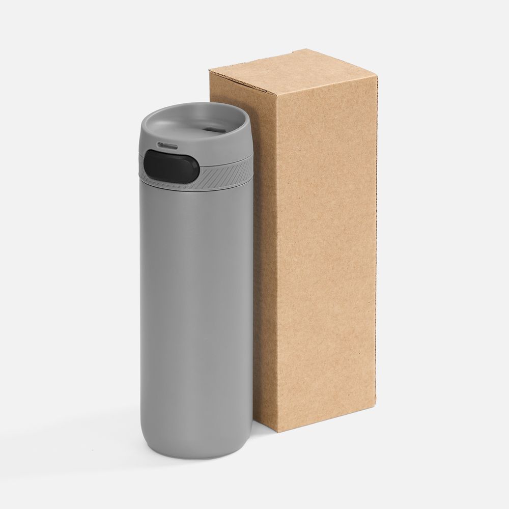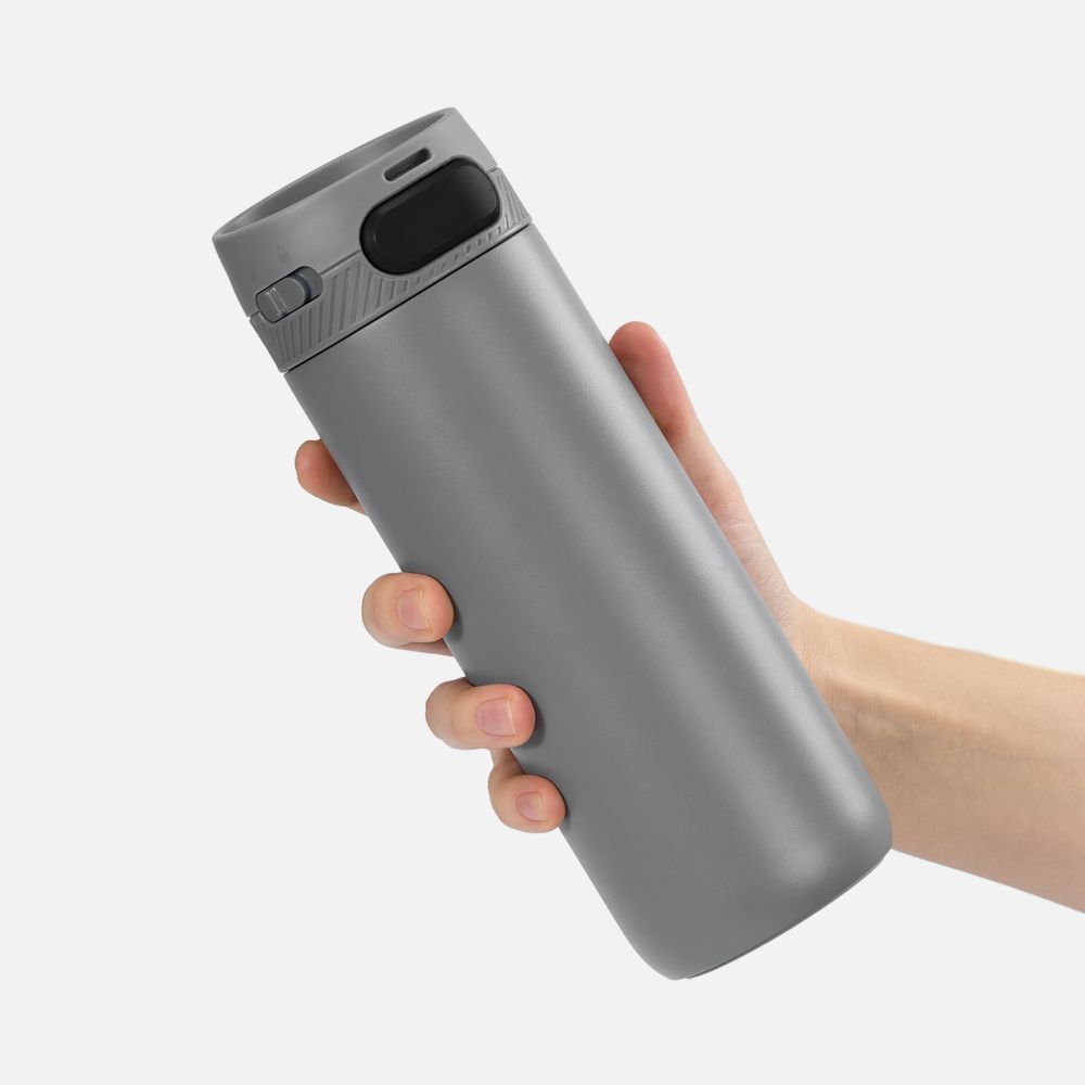 Главная ->Корпоративные подарки и рекламные сувениры на складе -> Термос и бутылка -> Термокружки -> Термостакан X1 с цветной кнопкой, серый с черным