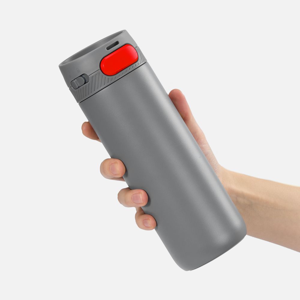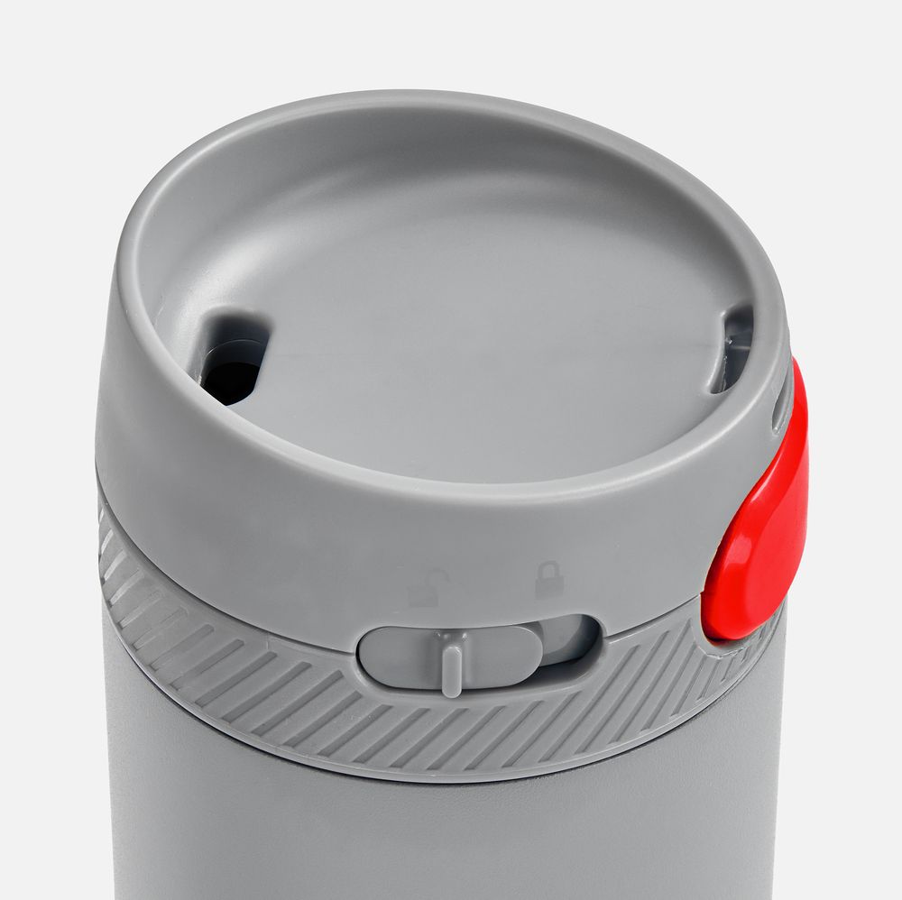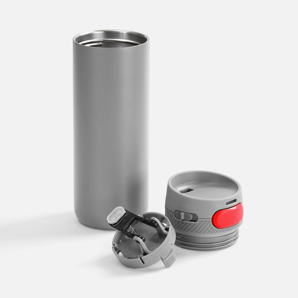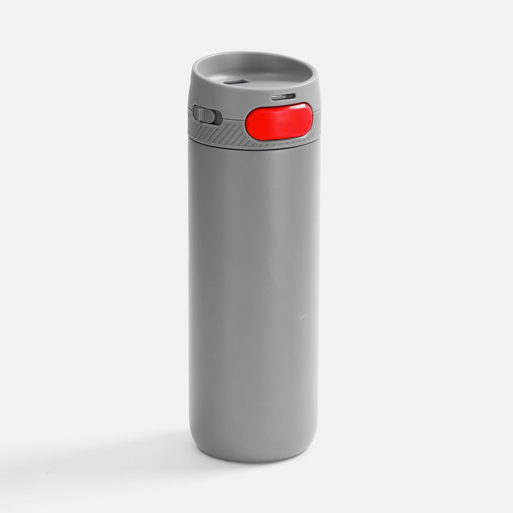 Главная ->Корпоративные подарки и рекламные сувениры на складе -> Термос и бутылка -> Термокружки -> Термостакан X1 с цветной кнопкой, серый с красным