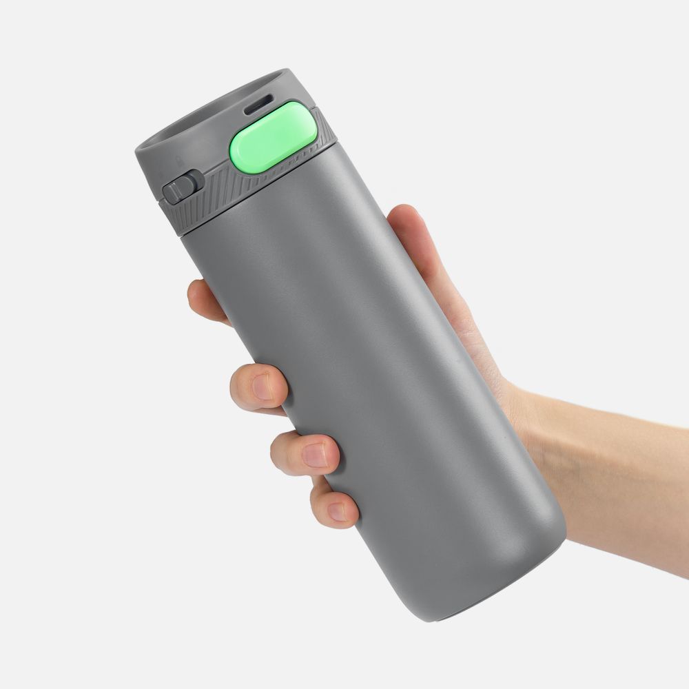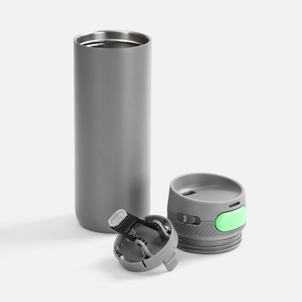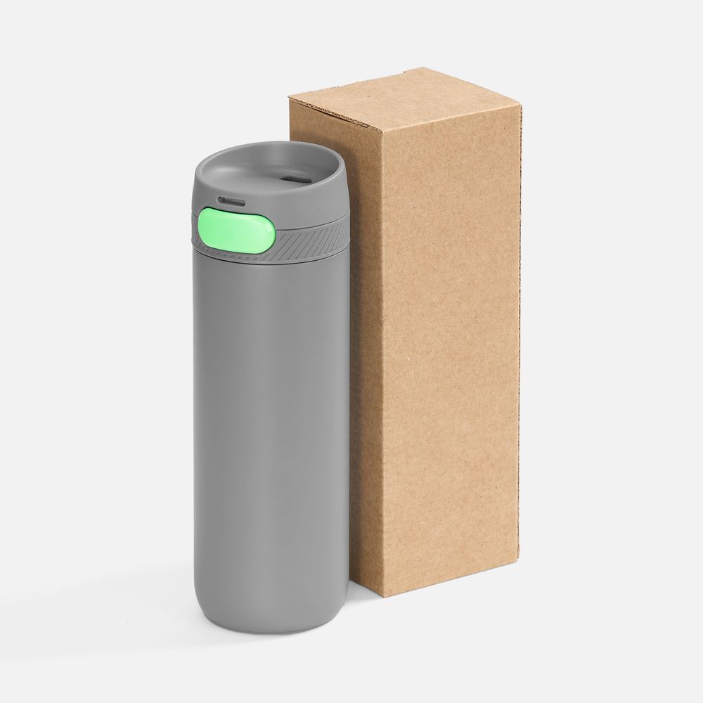 Главная ->Корпоративные подарки и рекламные сувениры на складе -> Термос и бутылка -> Термокружки -> Термостакан X1 с цветной кнопкой, серый с зеленым