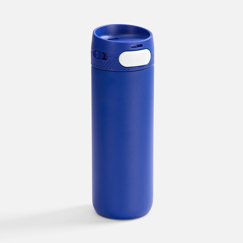 Главная ->Корпоративные подарки и рекламные сувениры на складе -> Термос и бутылка -> Термокружки -> Термостакан X1 с цветной кнопкой, синий с белым