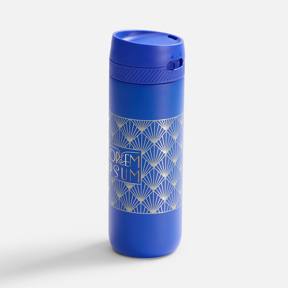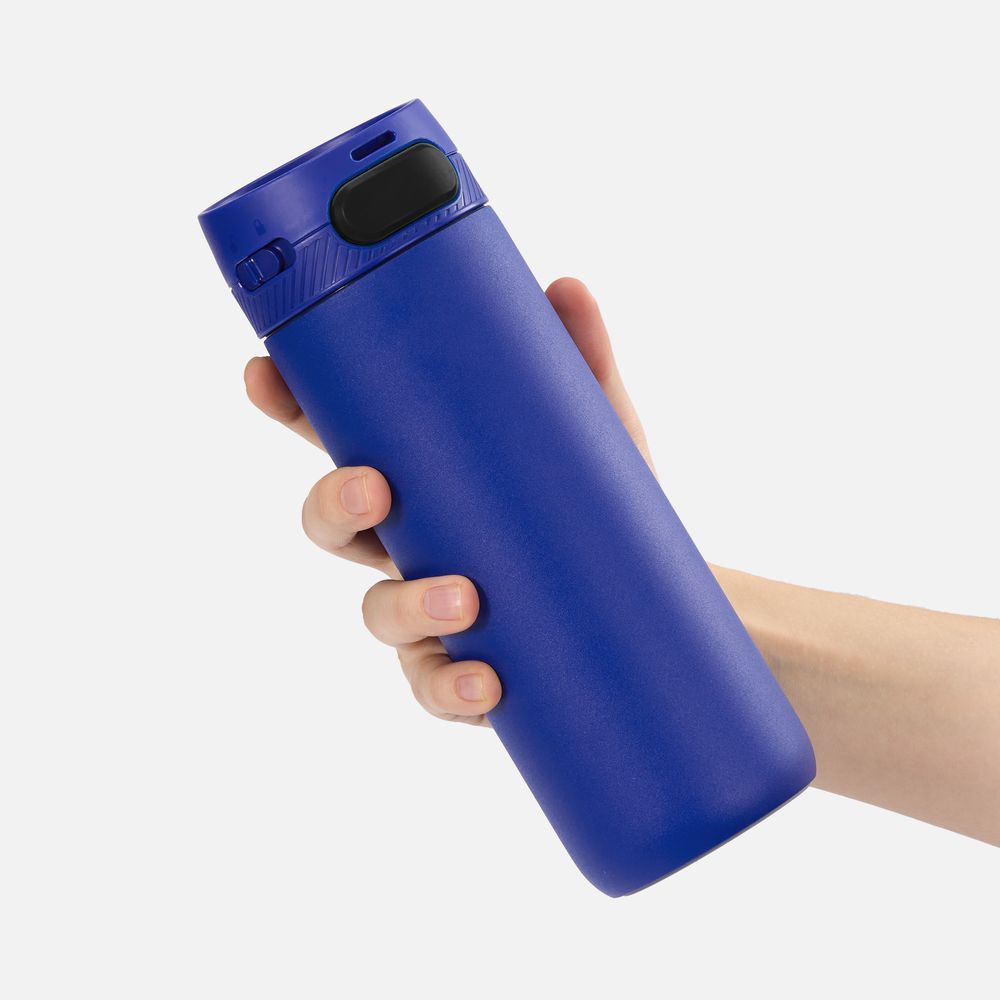 Главная ->Корпоративные подарки и рекламные сувениры на складе -> Термос и бутылка -> Термокружки -> Термостакан X1 с цветной кнопкой, синий с черным