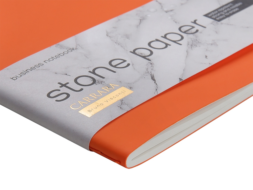 Главная ->Корпоративные подарки и рекламные сувениры на складе -> Ежедневники для работы -> Блокноты -> Тетрадь с каменной бумагой А5 Carrara 40 л., линейка, оранжевый