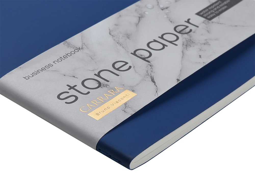 Главная ->Корпоративные подарки и рекламные сувениры на складе -> Ежедневники для работы -> Блокноты -> Тетрадь с каменной бумагой А5 Carrara 40 л., линейка, синий