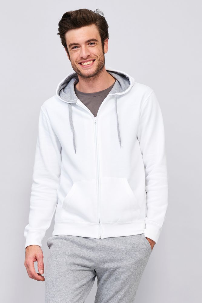 Толстовка мужская на молнии Soul Men 290 с контрастным капюшоном, белый, размер S с логотипом компании - отличный способ заявить вашу корпоративную идентичность.