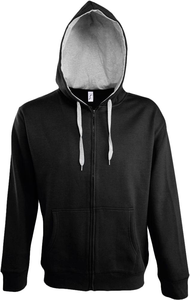 Толстовка мужская на молнии Soul men 290 с контрастным капюшоном черная, размер M