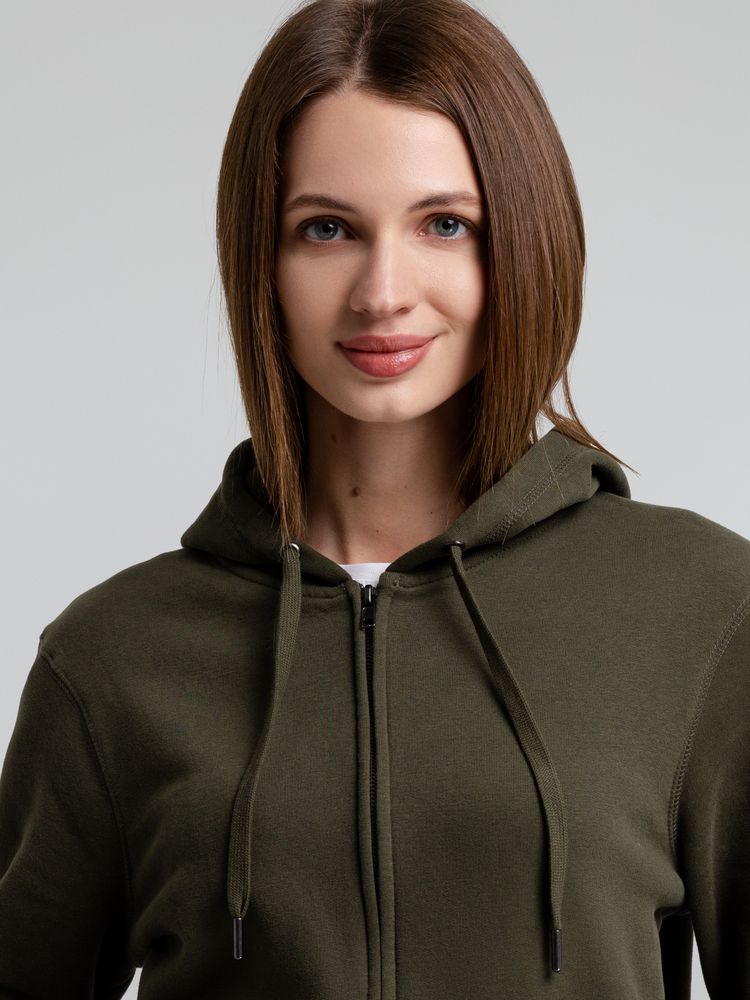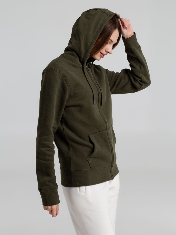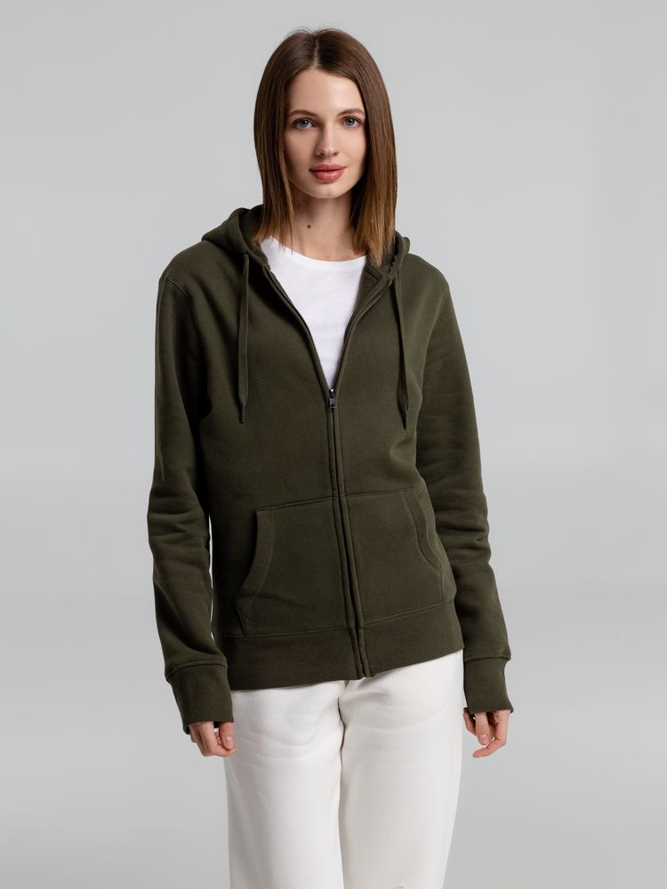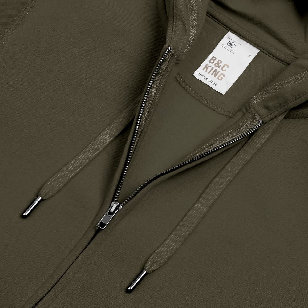 Главная ->Корпоративные подарки и рекламные сувениры на складе -> Promo одежда и аксессуары -> Толстовки -> Толстовка на молнии с капюшоном унисекс King, хаки, размер XS