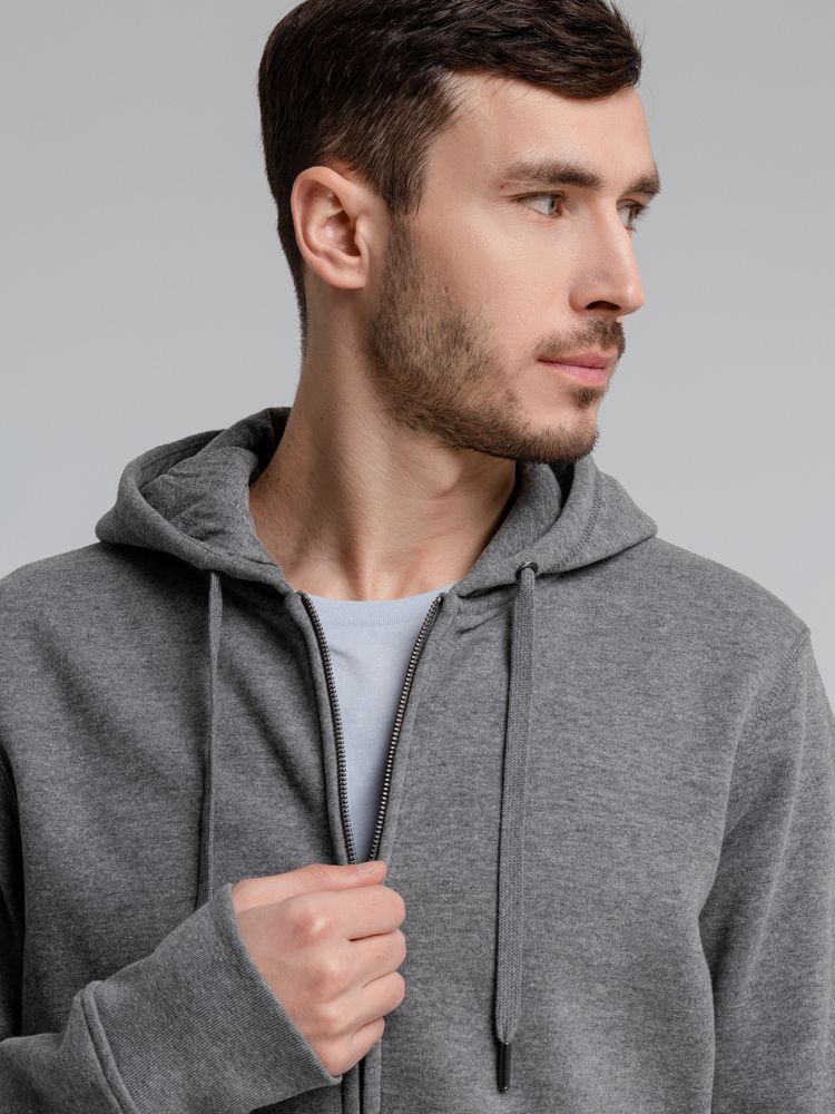 Главная ->Корпоративные подарки и рекламные сувениры на складе -> Promo одежда и аксессуары -> Толстовки -> Толстовка на молнии с капюшоном унисекс King, темно-серый меланж